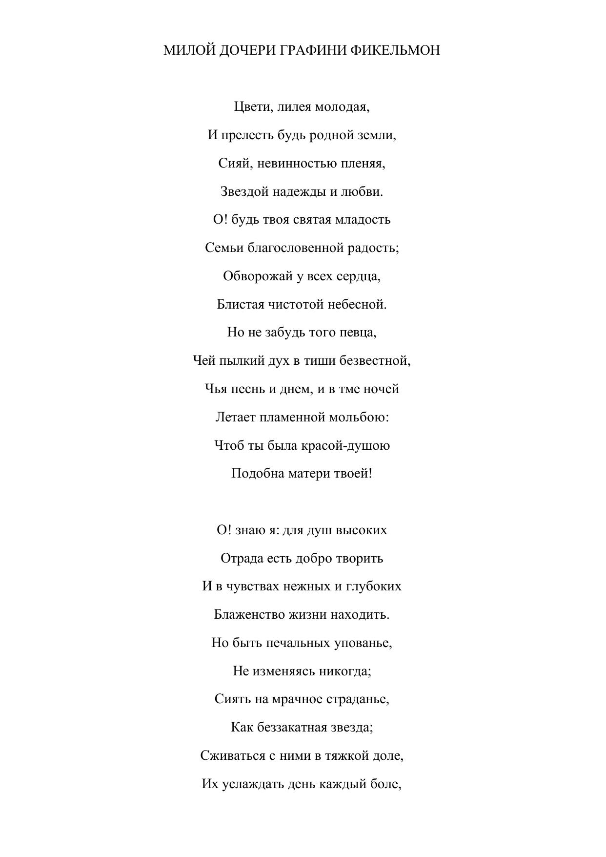 Милой дочери графини Фикельмон