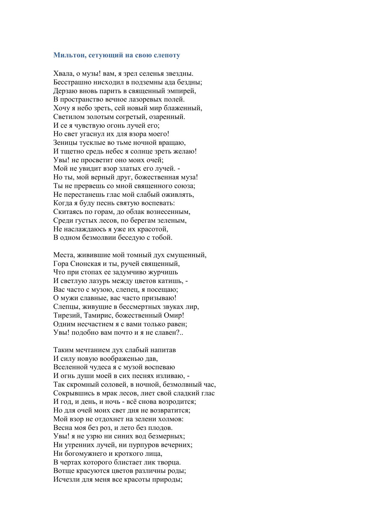 Мильтон, сетующий на свою слепоту
