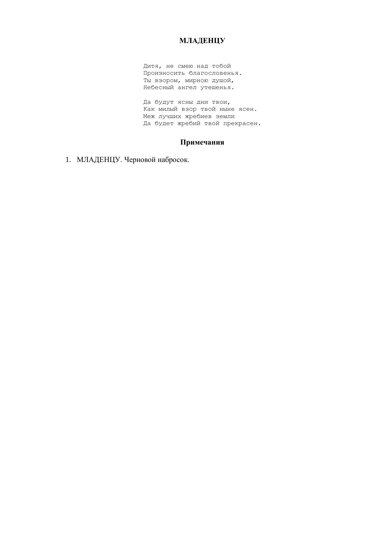 Младенцу ("Дитя, не смею над тобой...")