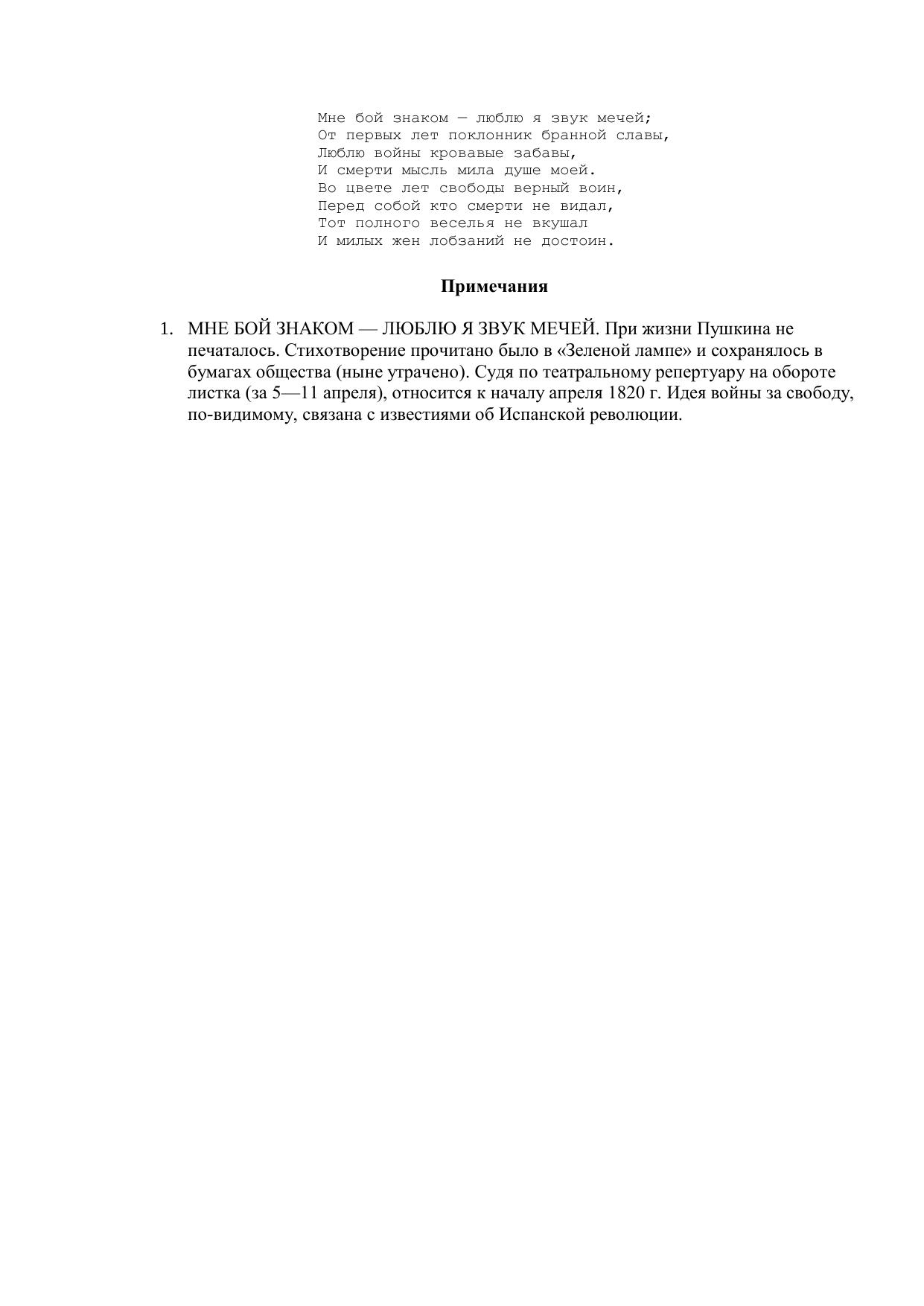 Мне бой знаком - люблю я звук мечей...