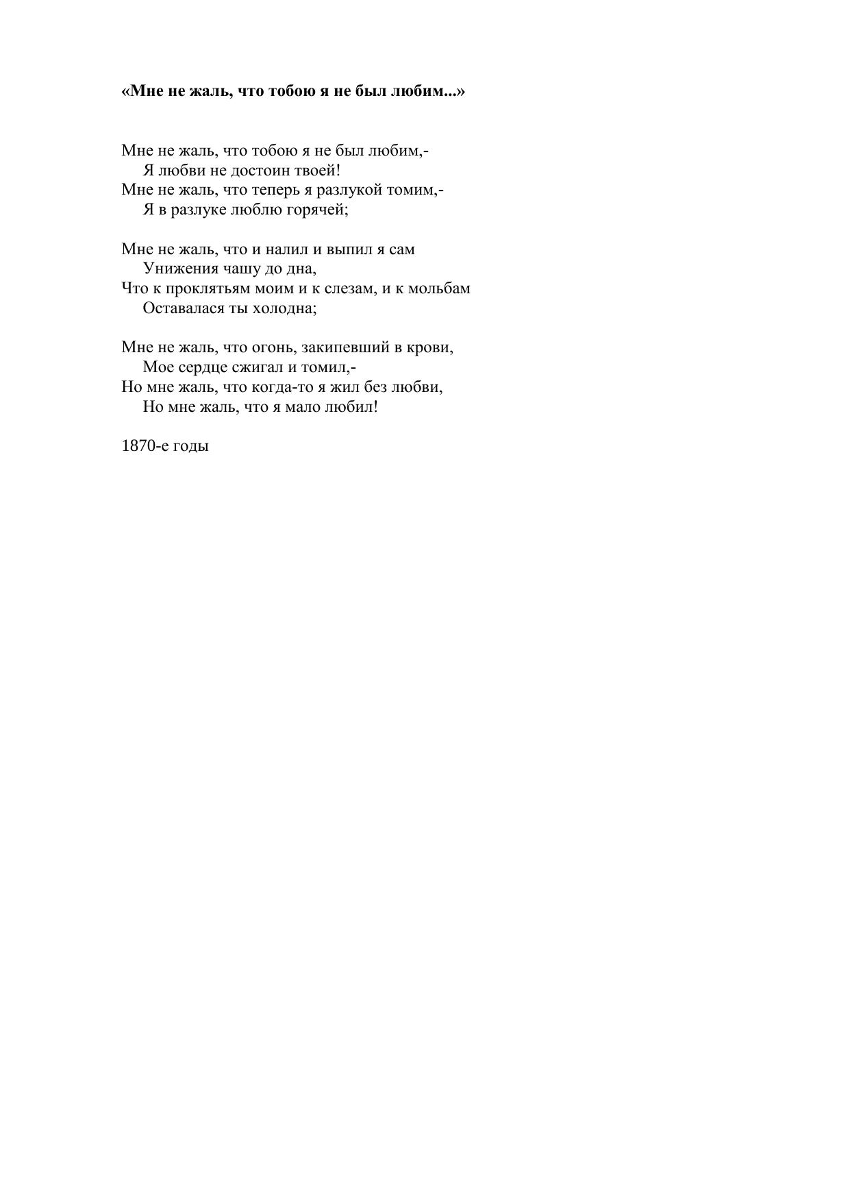 Мне не жаль, что тобою я не был любим...