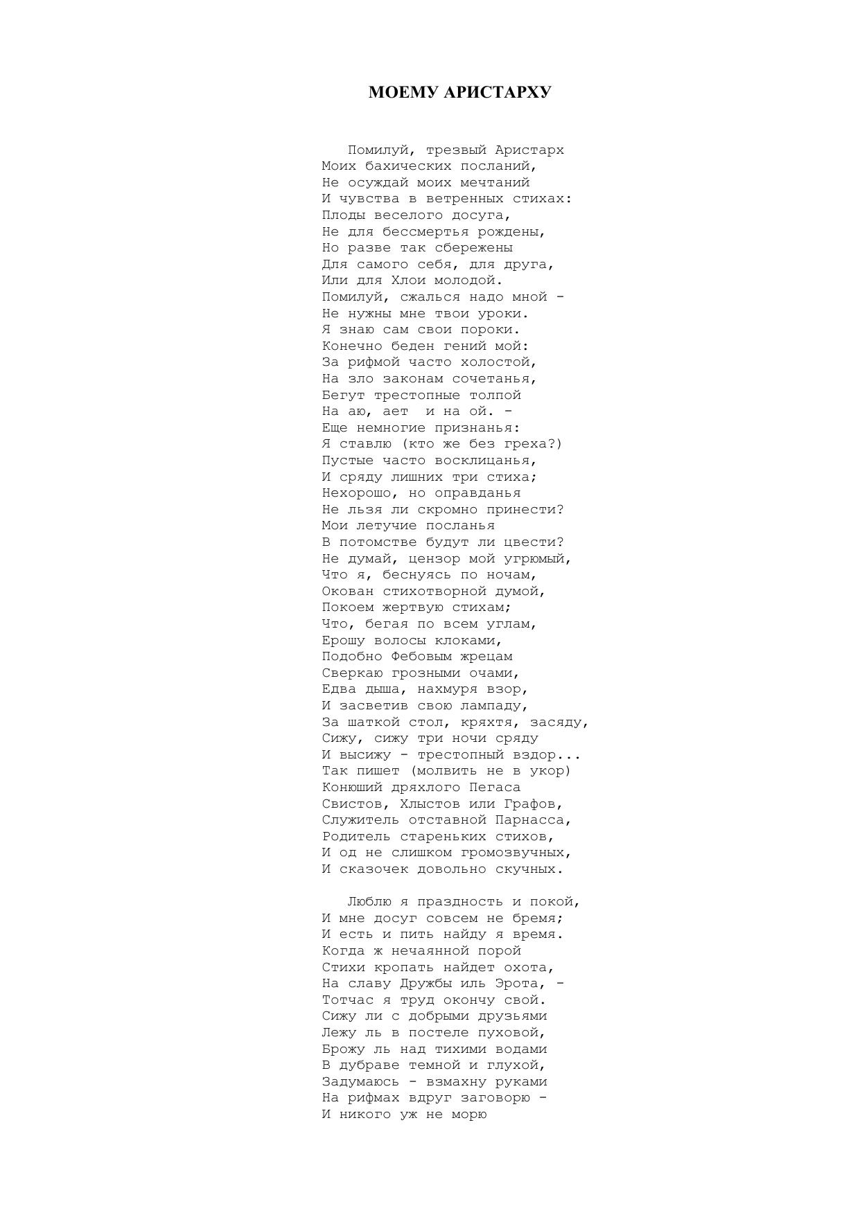 Моему Аристарху ("Помилуй, трезвый Аристарх...")
