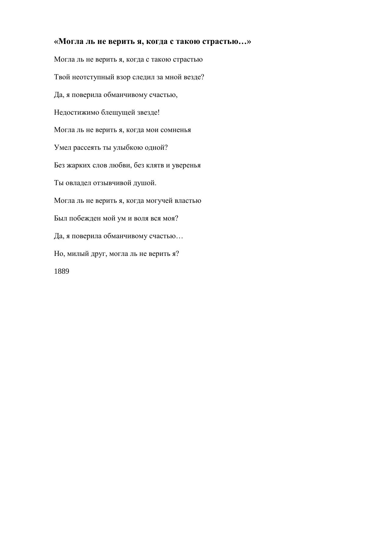 Могла ль не верить я, когда с такою страстью…