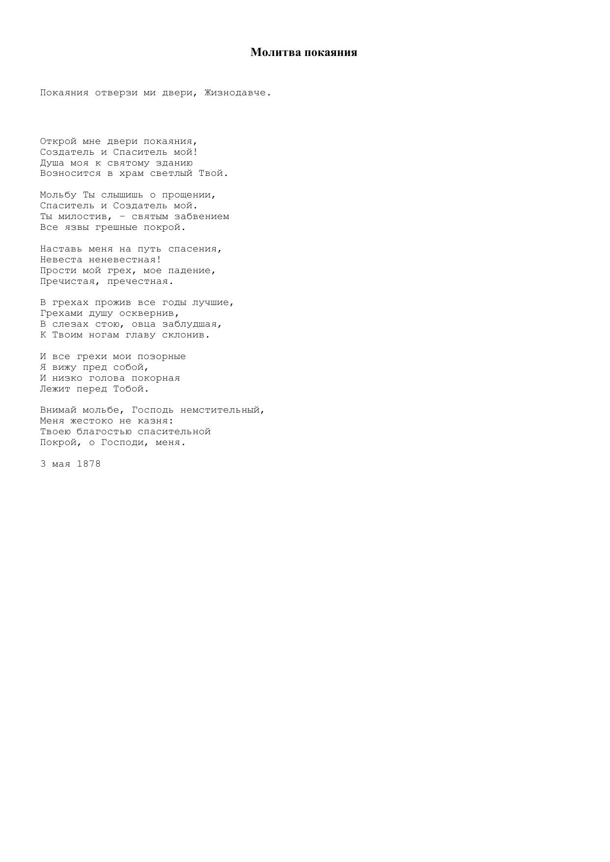 Молитва покаяния