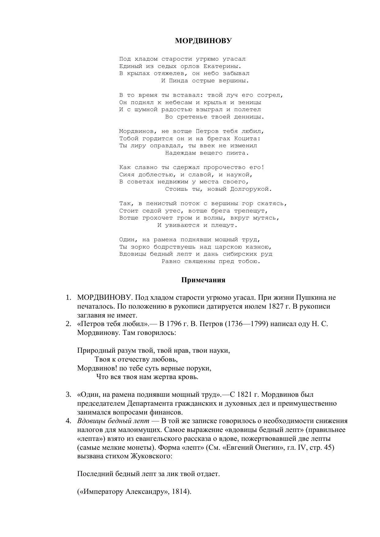 Мордвинову ("Под хладом старости угрюмо угасал...")