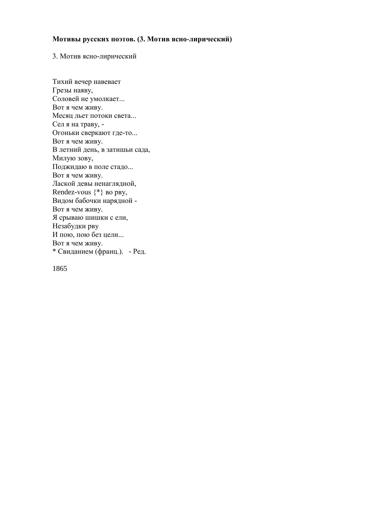 Мотивы русских поэтов. 3. Мотив ясно-лирический