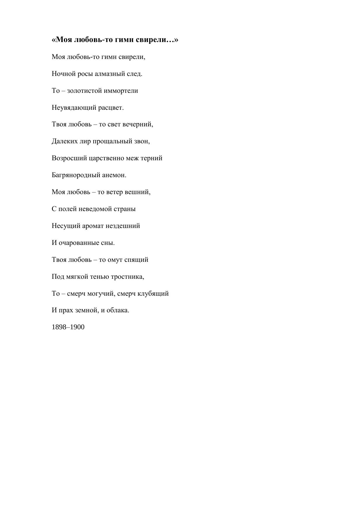 Моя любовь-то гимн свирели…