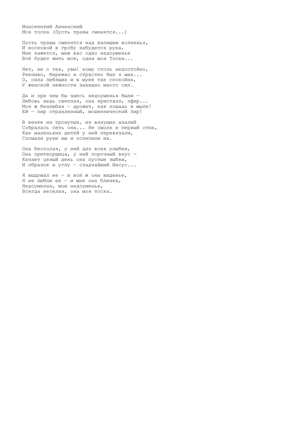 Моя тоска (Пусть травы сменятся...)