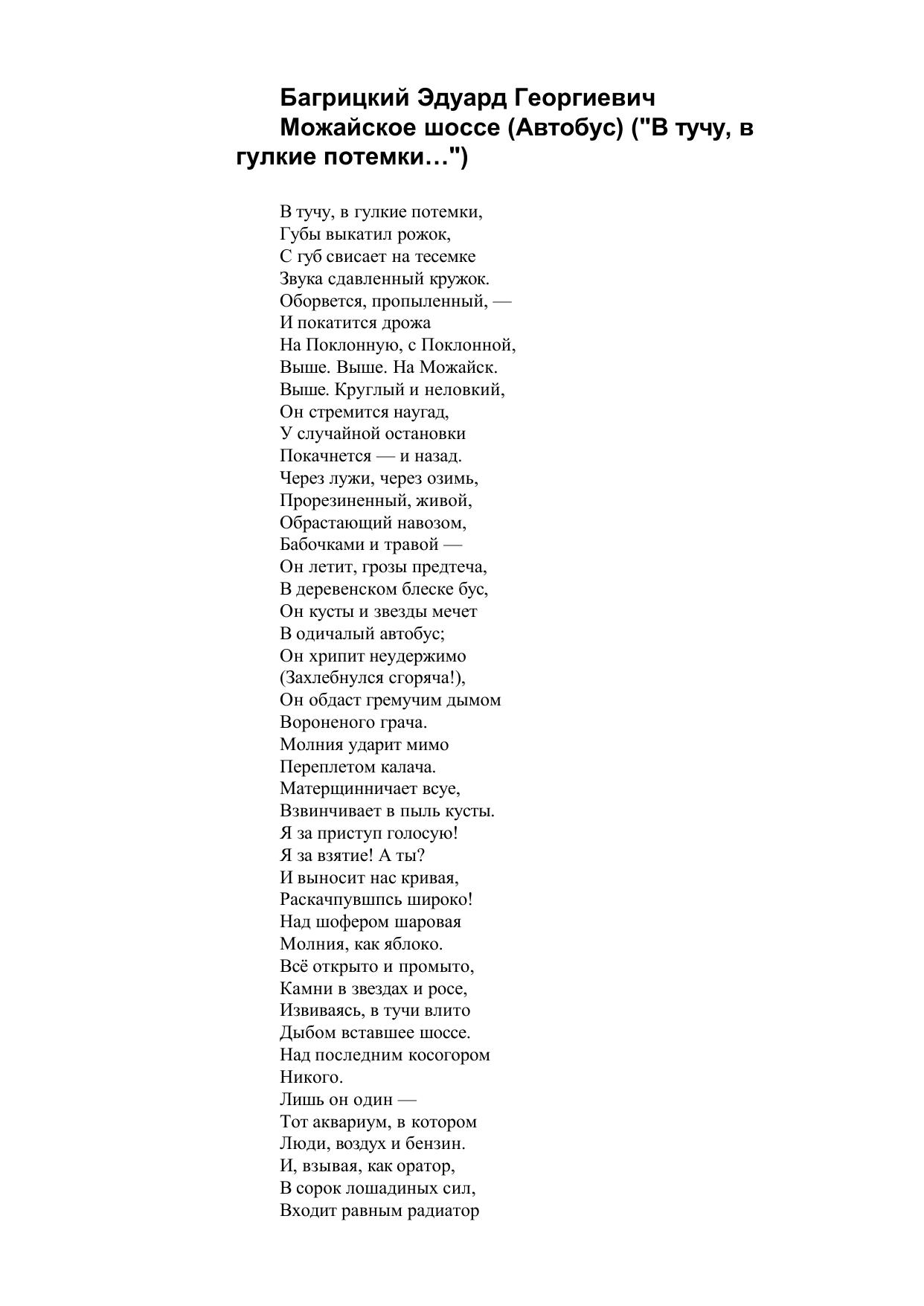 Можайское шоссе (Автобус) (В тучу, в гулкие потемки…)