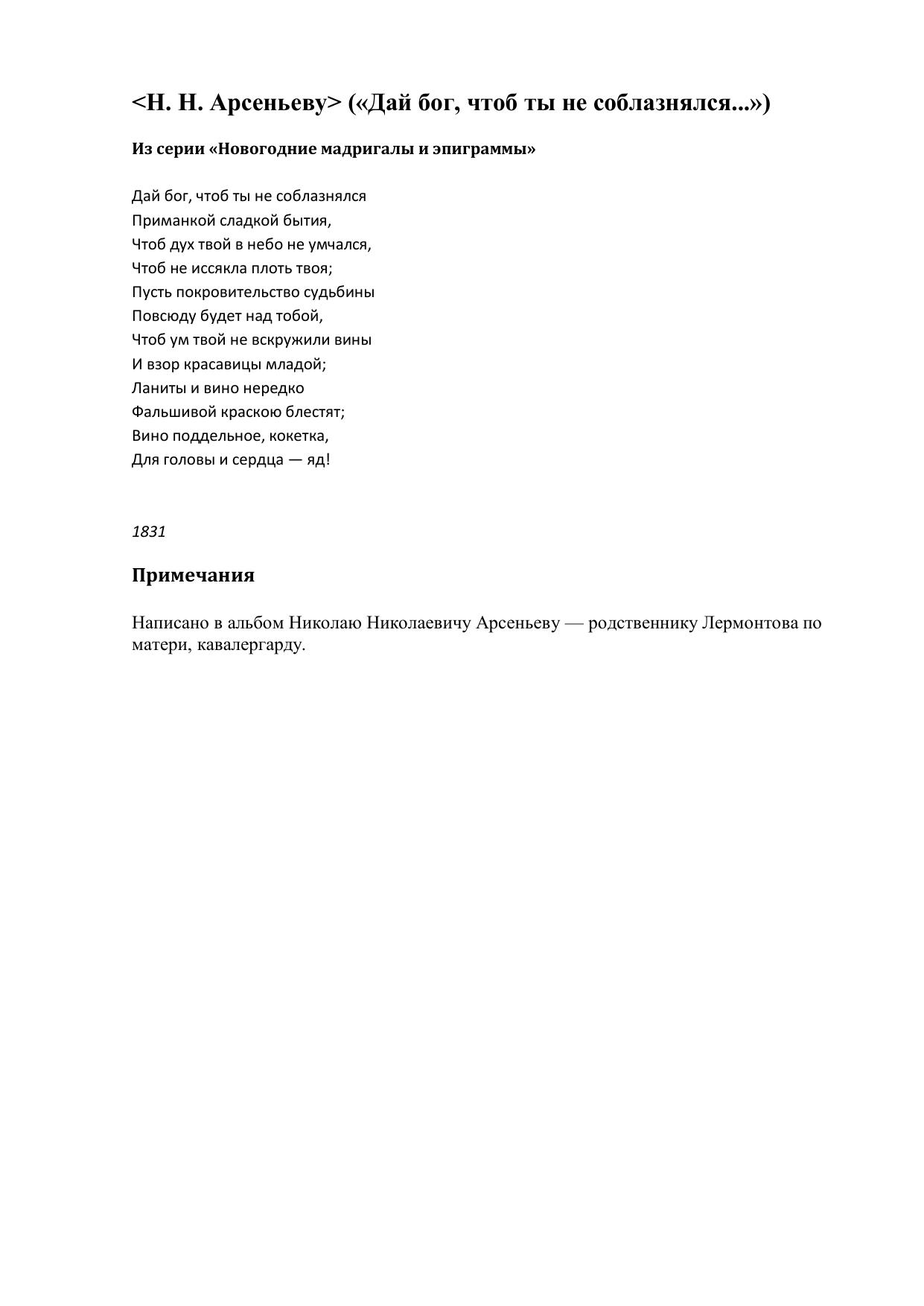 Н. Н. Арсеньеву (Дай бог, чтоб ты не соблазнялся...)