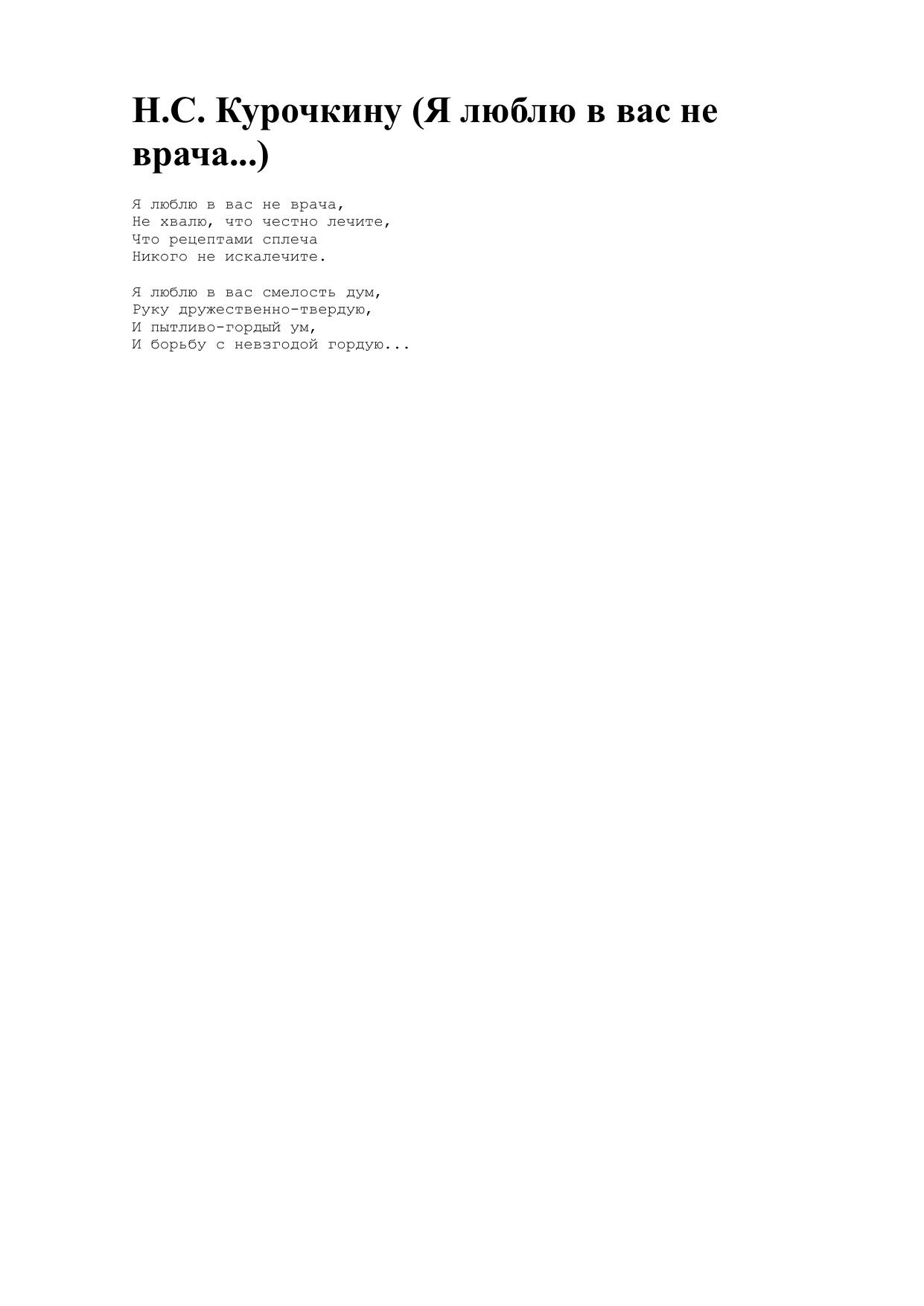 Н.С. Курочкину (Я люблю в вас не врача...)