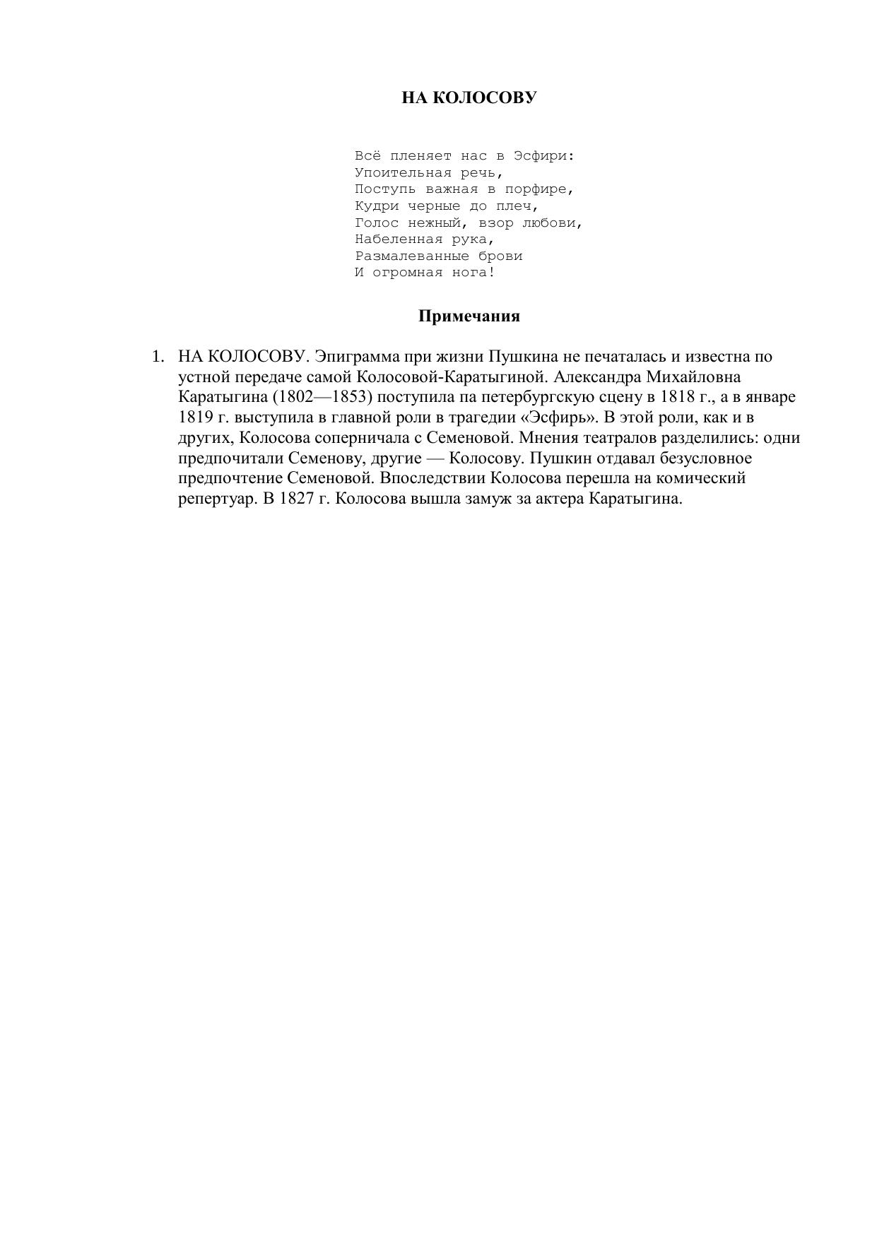 На Колосову ("Всё пленяет нас в Эсфири...")