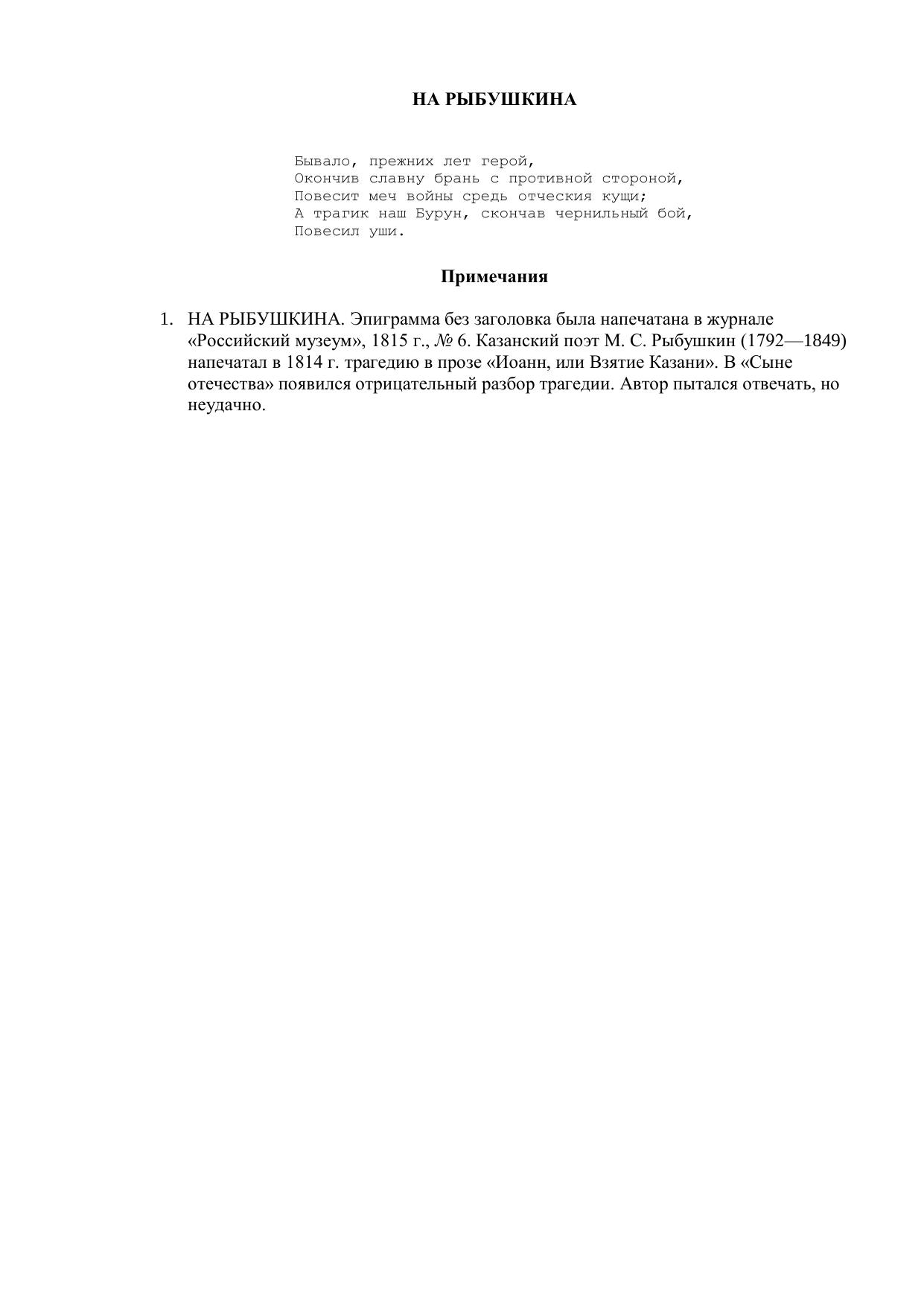На Рыбушкина ("Бывало, прежних лет герой...")