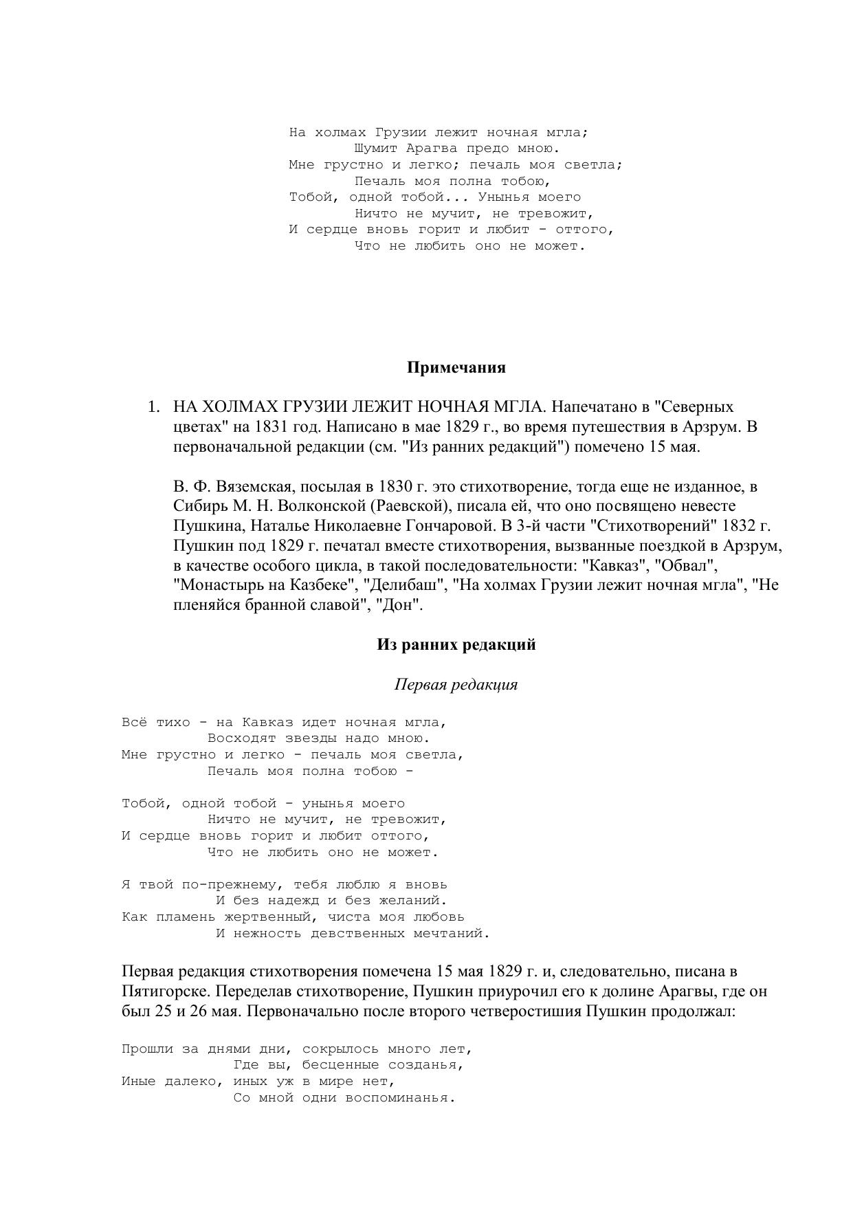 На холмах Грузии лежит ночная мгла..