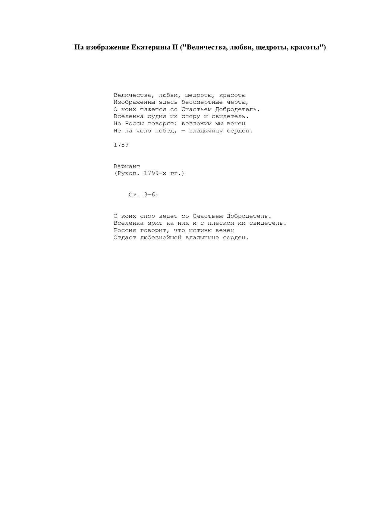 На изображение Екатерины II ("Величества, любви, щедроты, красоты")