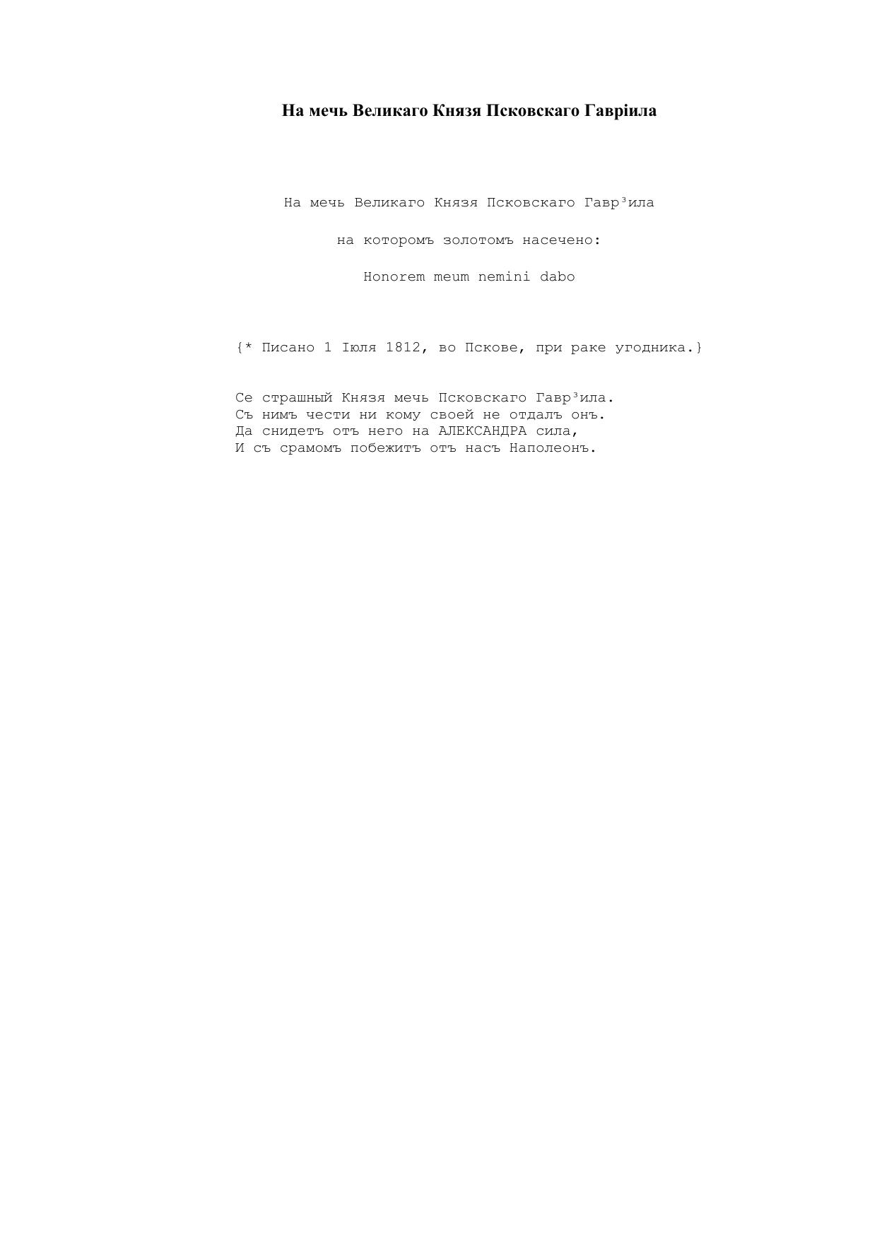 На мечь Великого Князя Псковскаго Гаврiила