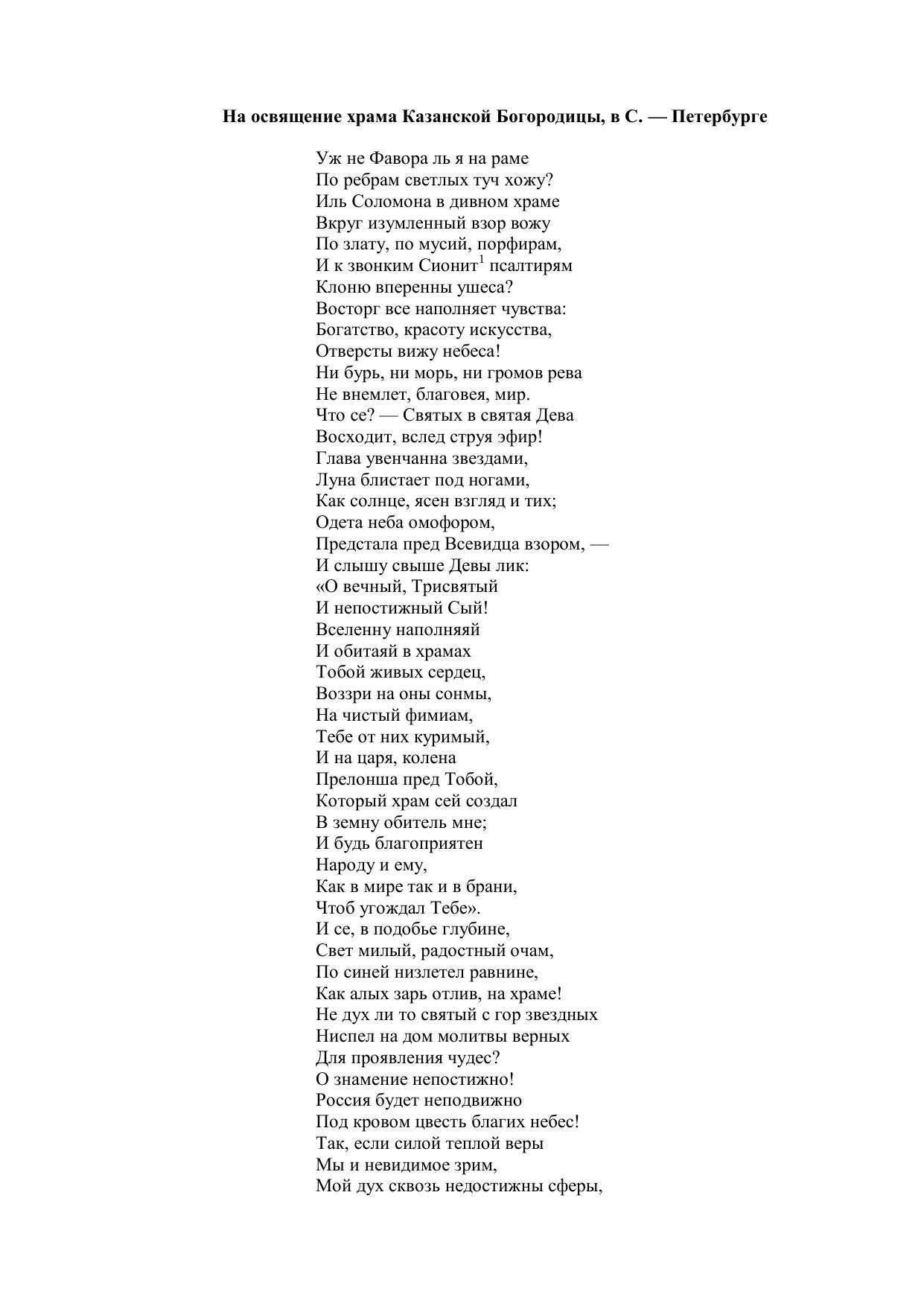 На освящение храма Казанской Богородицы, в С. — Петербурге