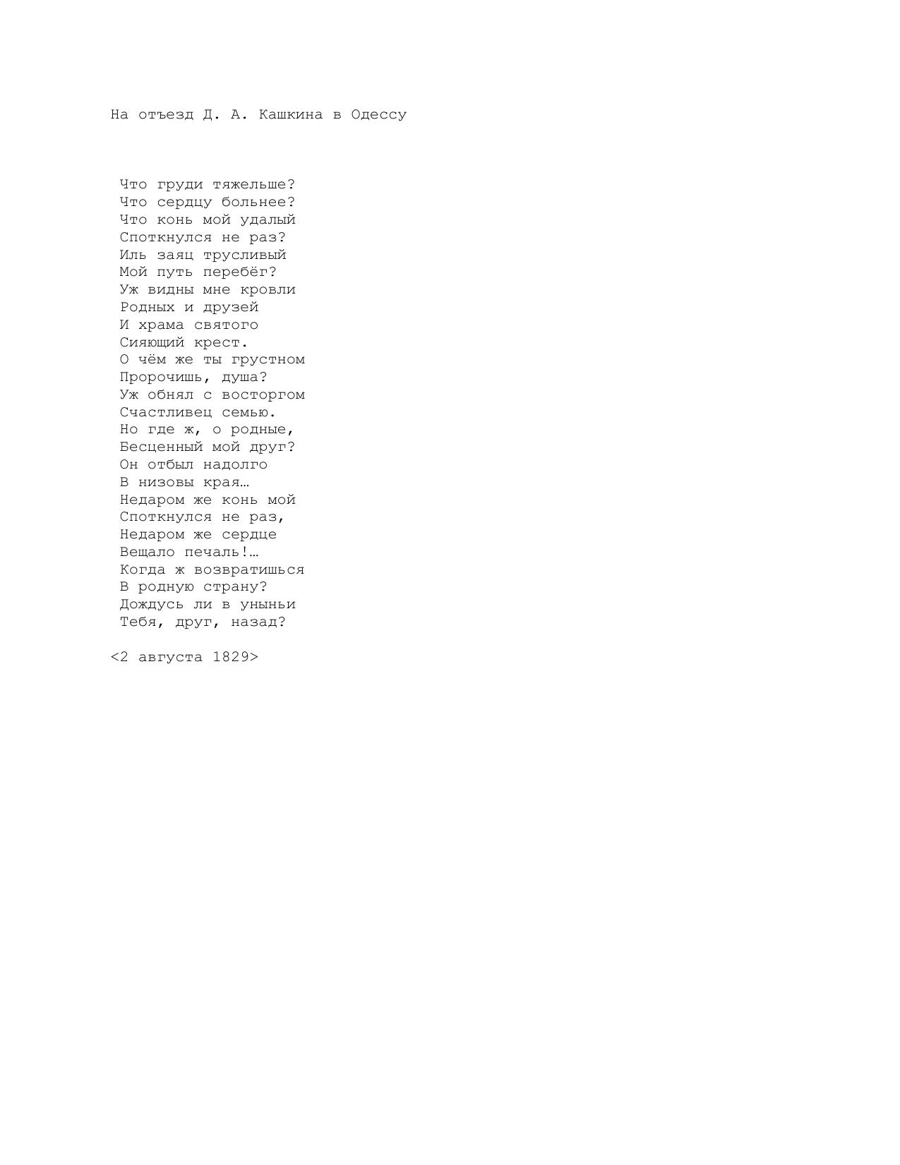 На отъезд Д. А. Кашкина в Одессу