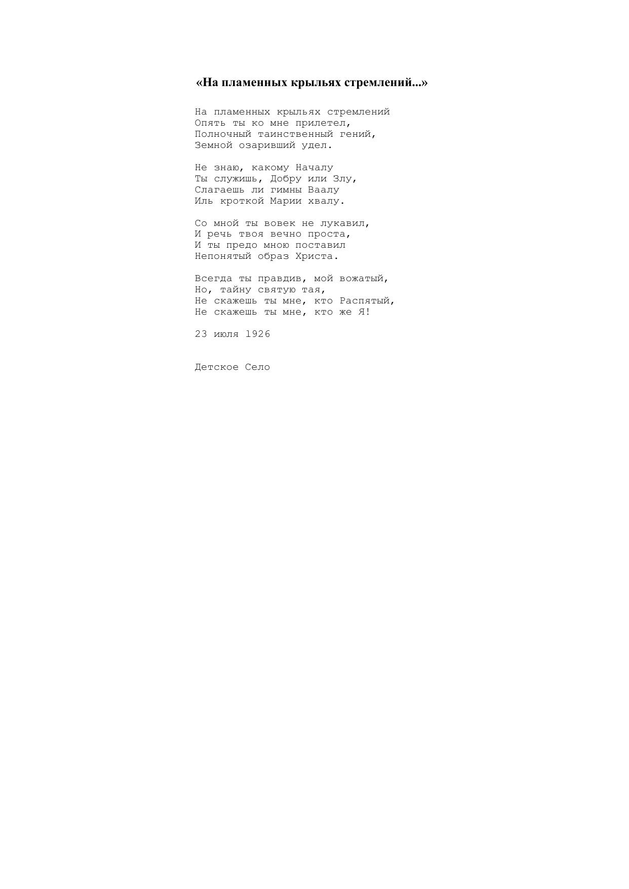 На пламенных крыльях стремлений...