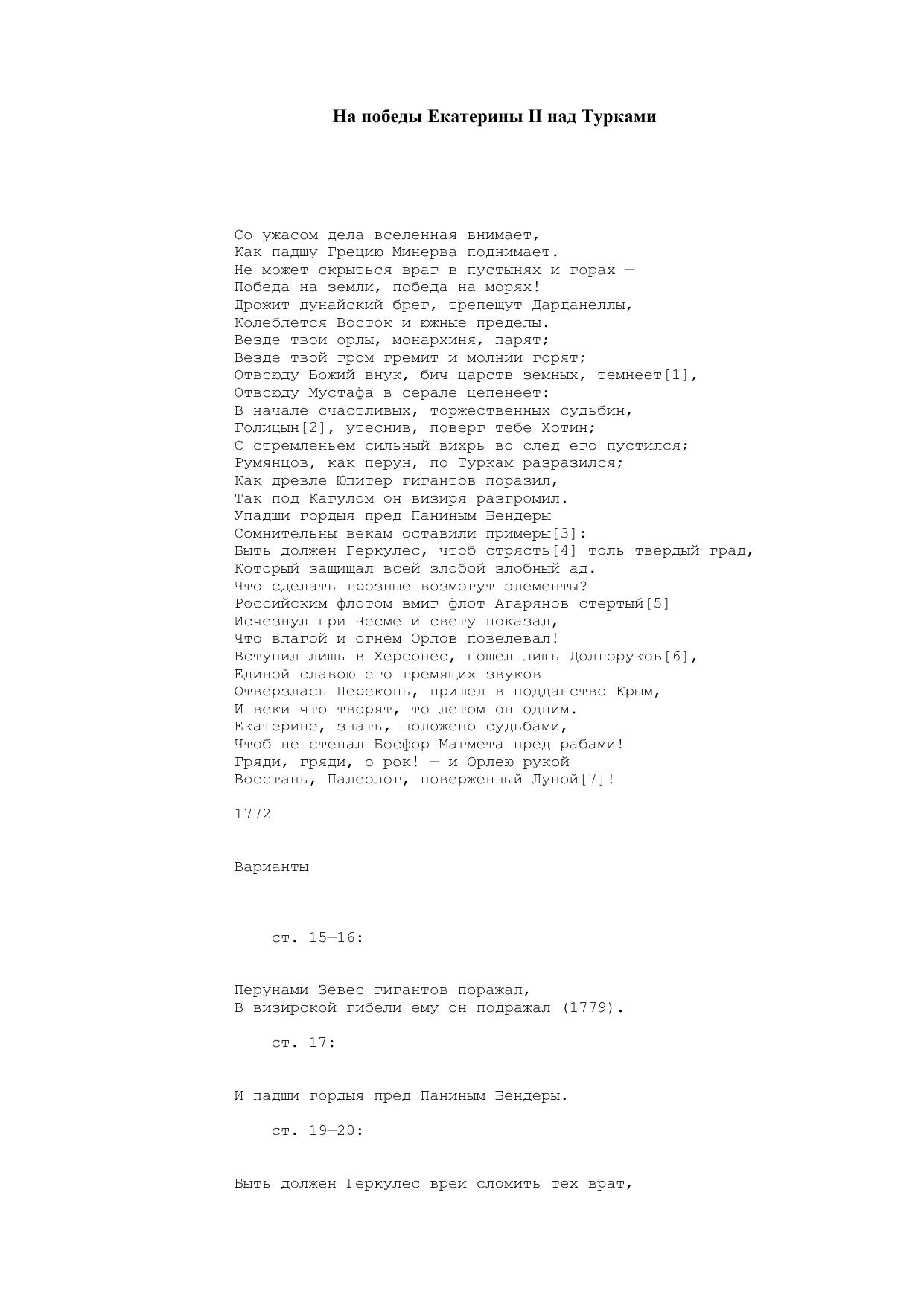На победы Екатерины II над Турками