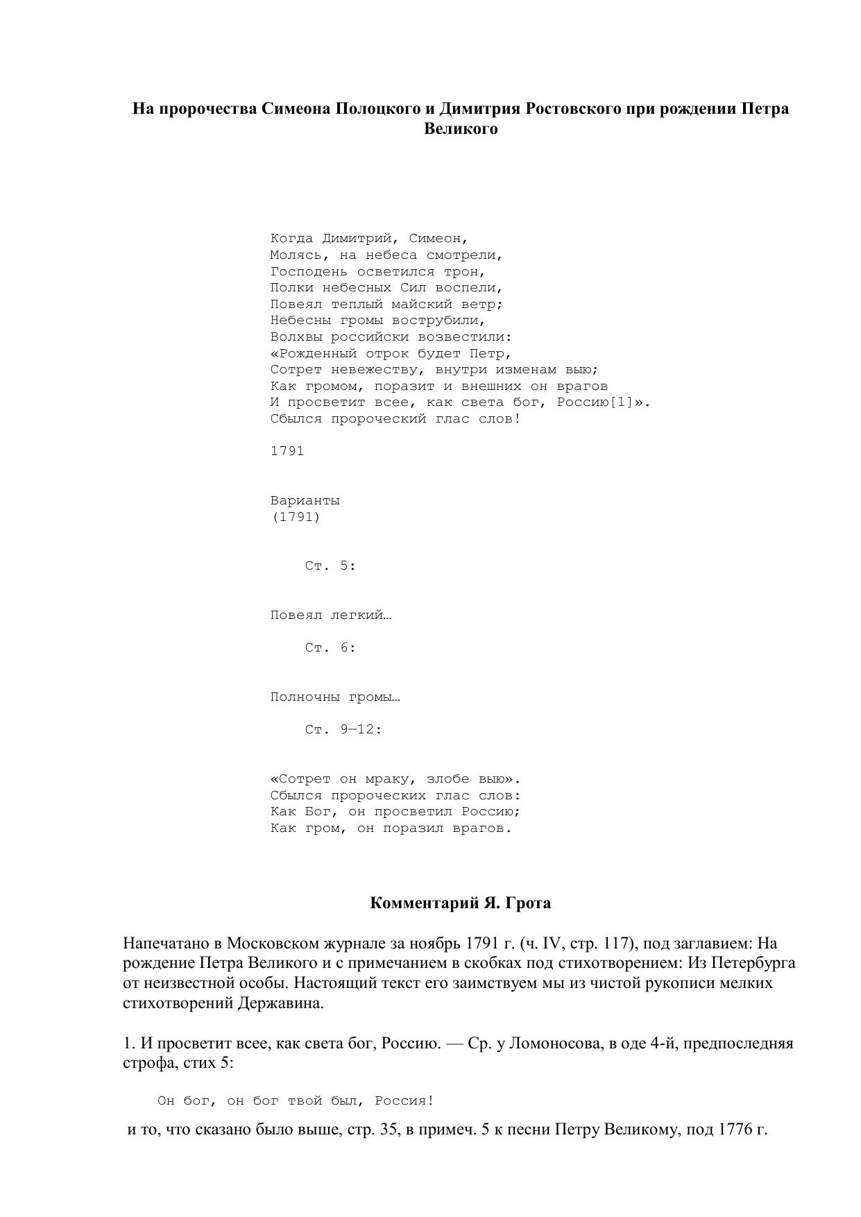 На пророчества Симеона Полоцкого и Димитрия Ростовского при рождении Петра Великого