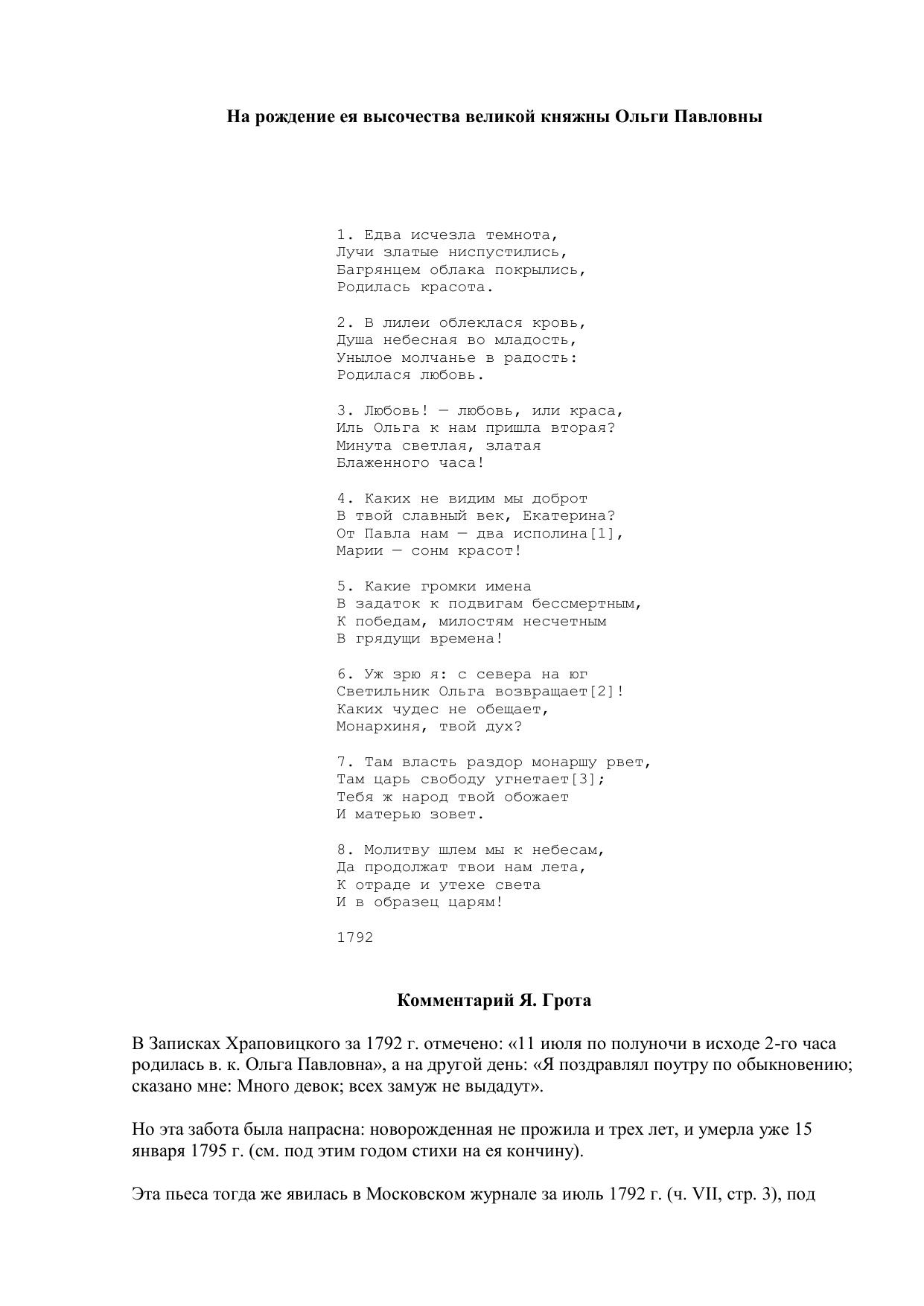 На рождение ея высочества великой княжны Ольги Павловны