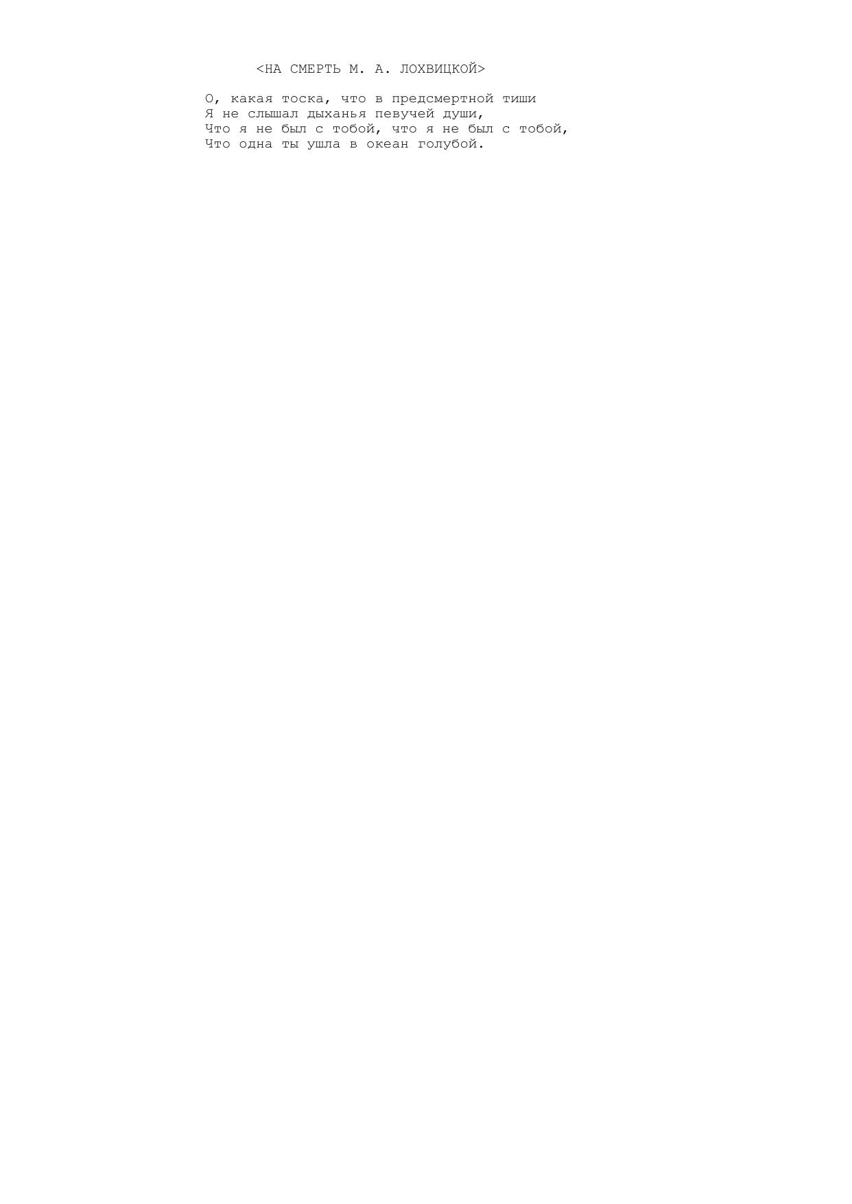 На смерть М. А. Лохвицкой