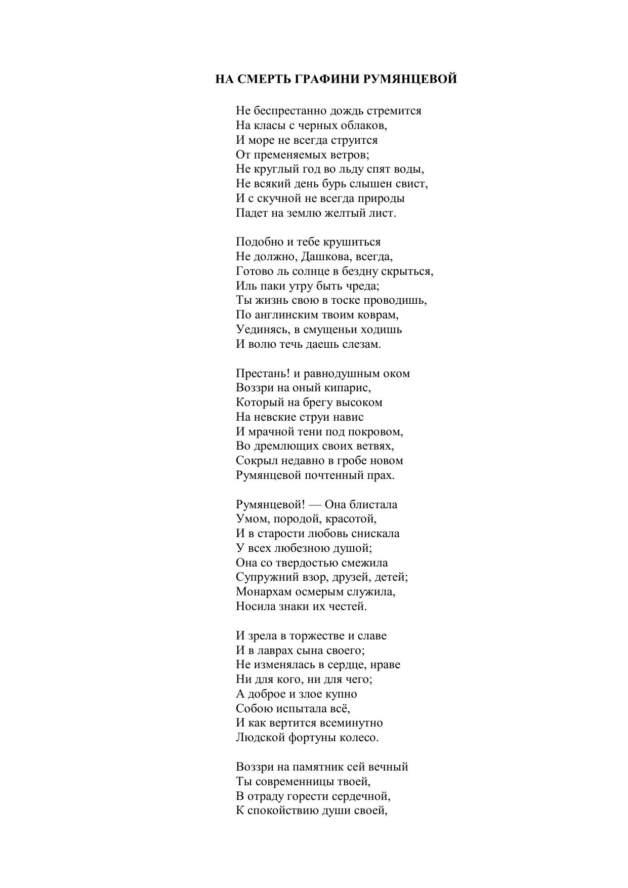 На смерть графини Румянцовой