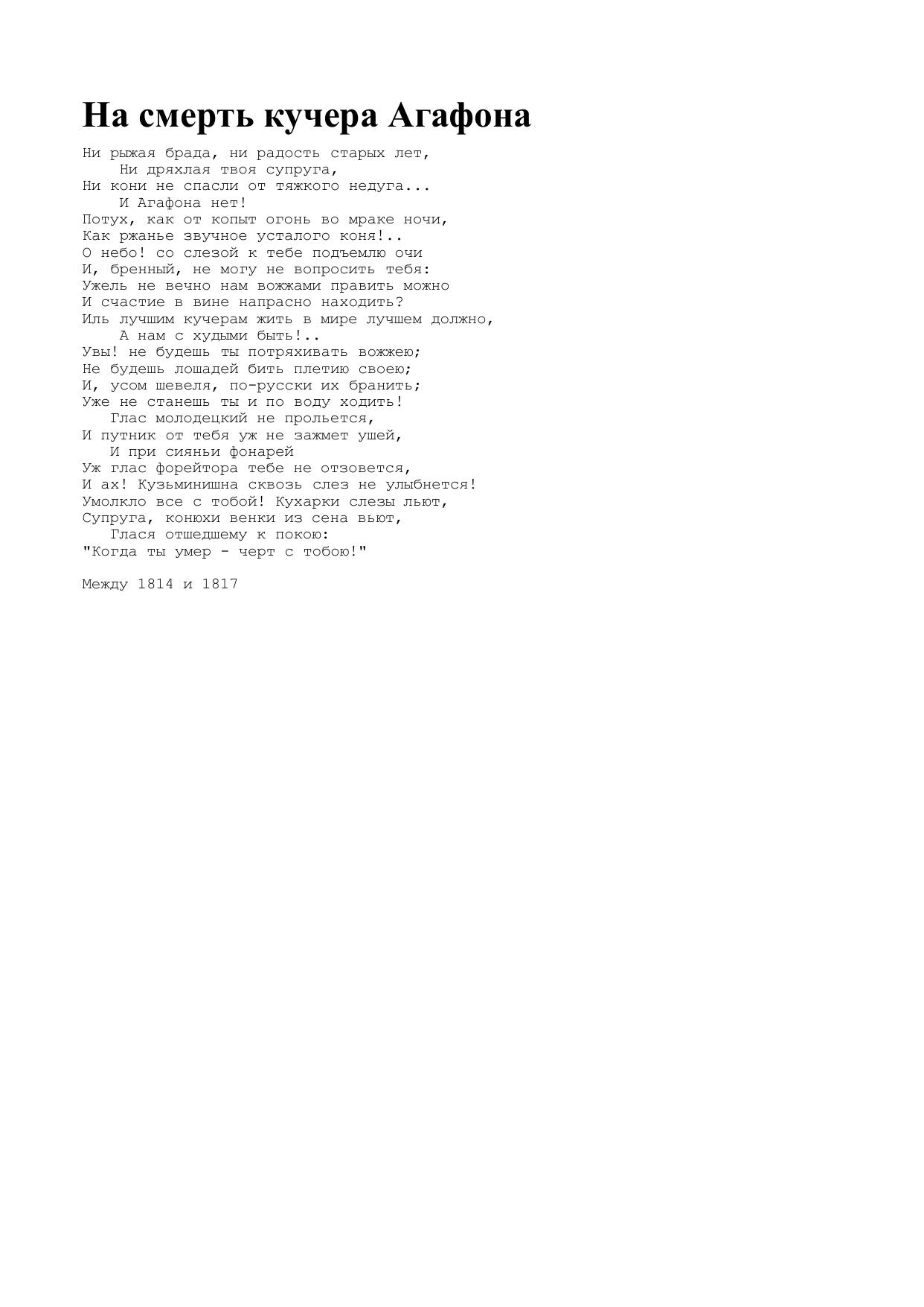 На смерть кучера Агафона