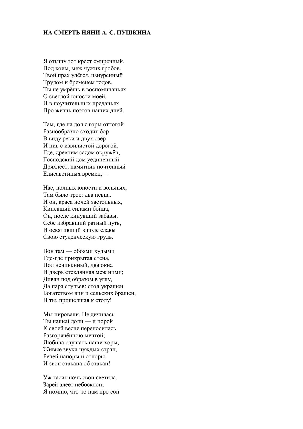 На смерть няни А. С. Пушкина