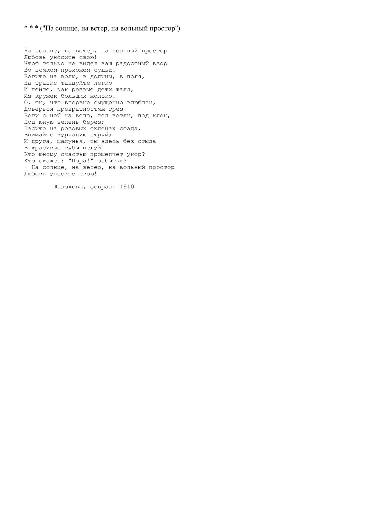 На солнце, на ветер, на вольный простор
