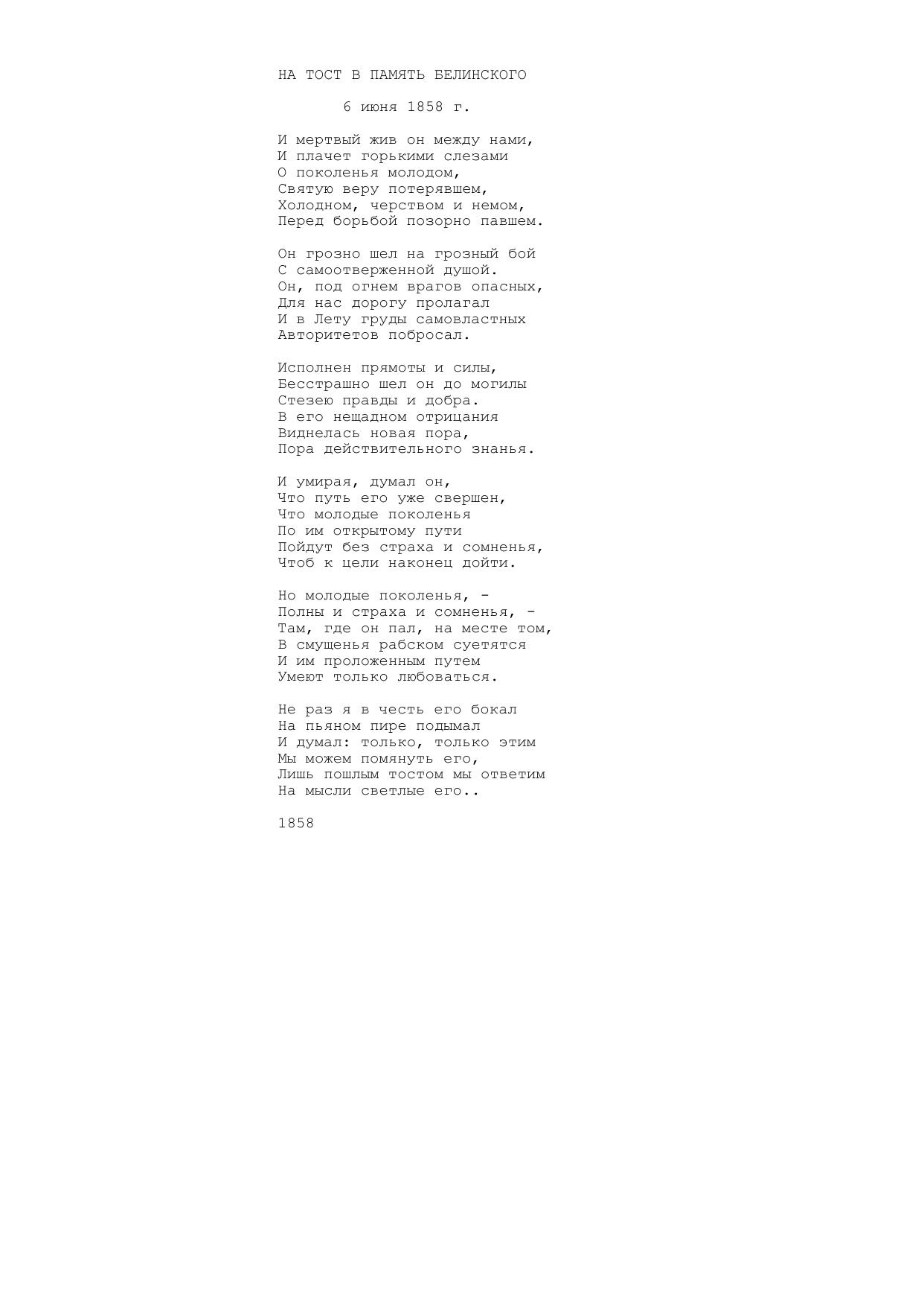 На тост в память Белинского