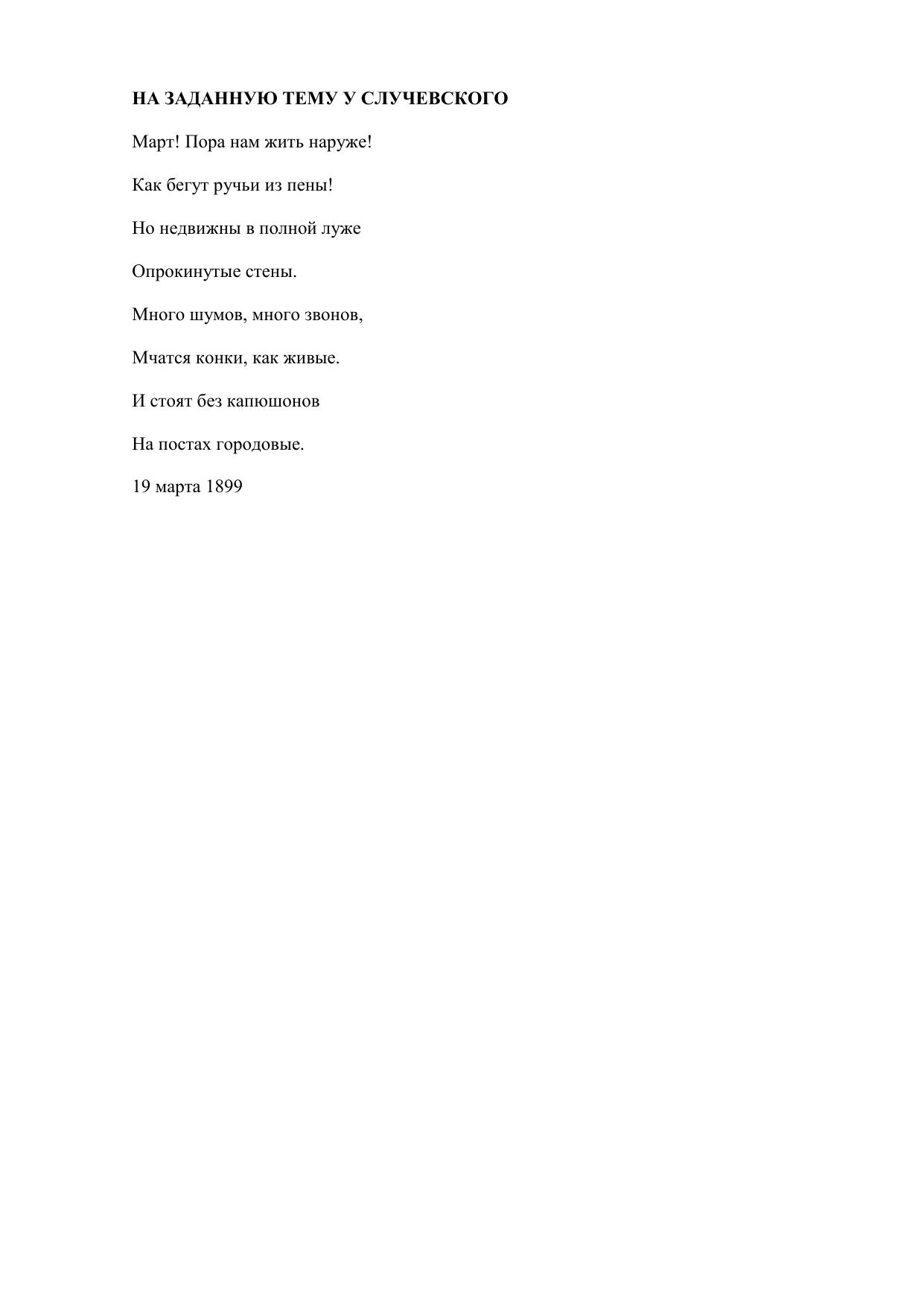 На заданную тему у Случевского (Март! Пора нам жить наруже!..)
