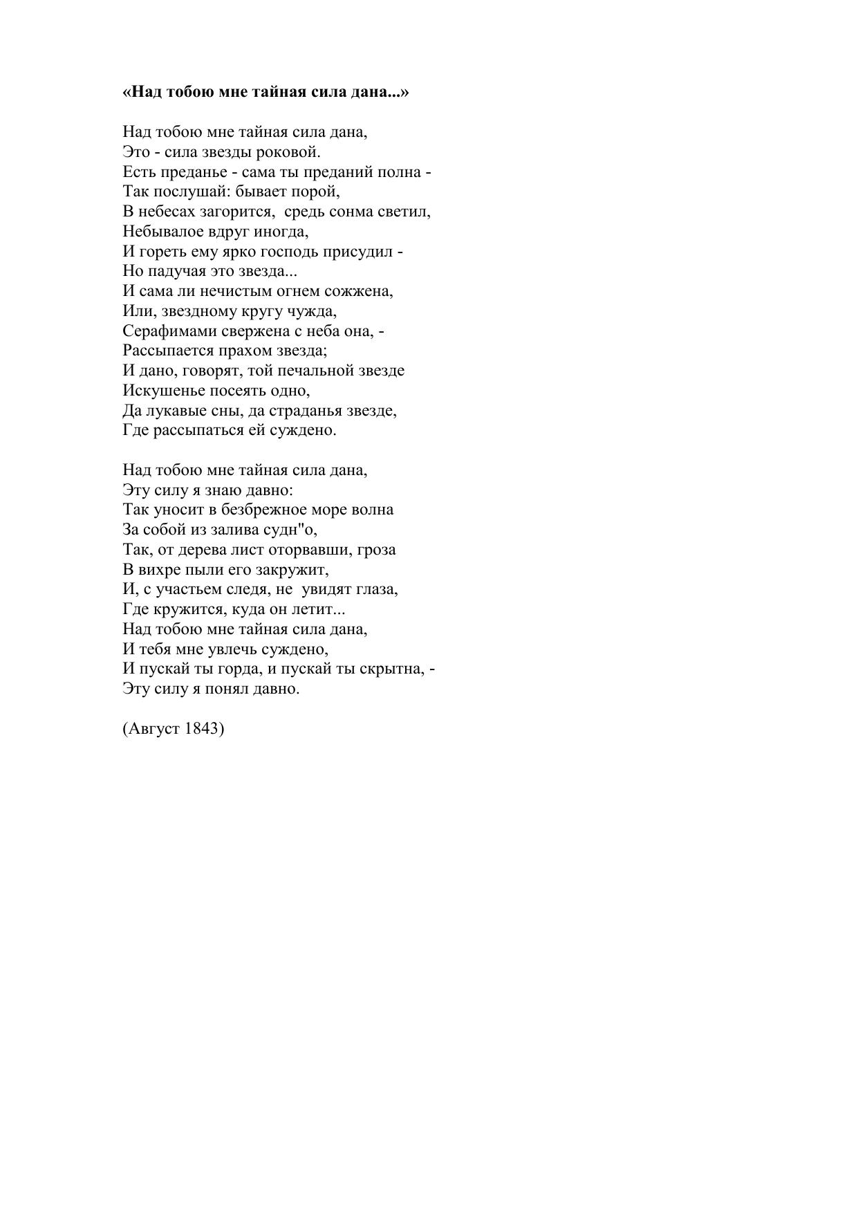 Над тобою мне тайная сила дана