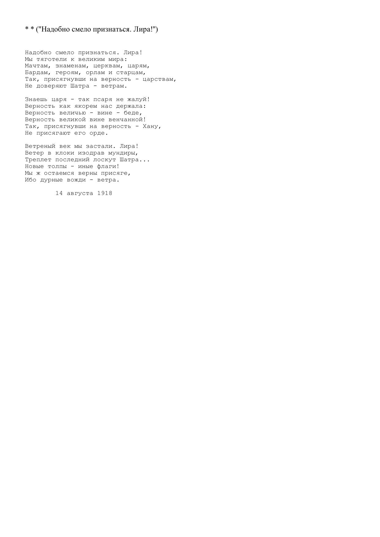 Надобно смело признаться. Лира!