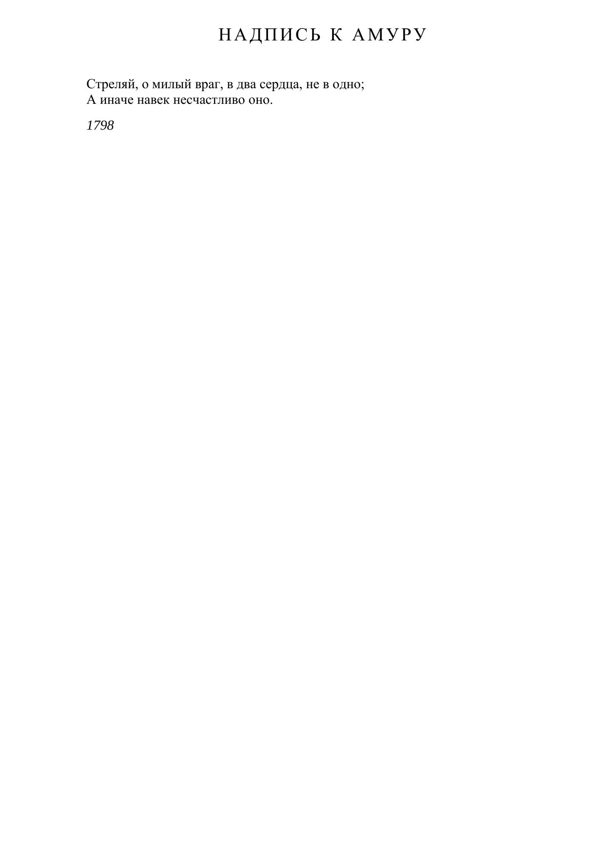 Надпись к Амуру («Стреляй, о милый враг, в два сердца, не в одно...»)