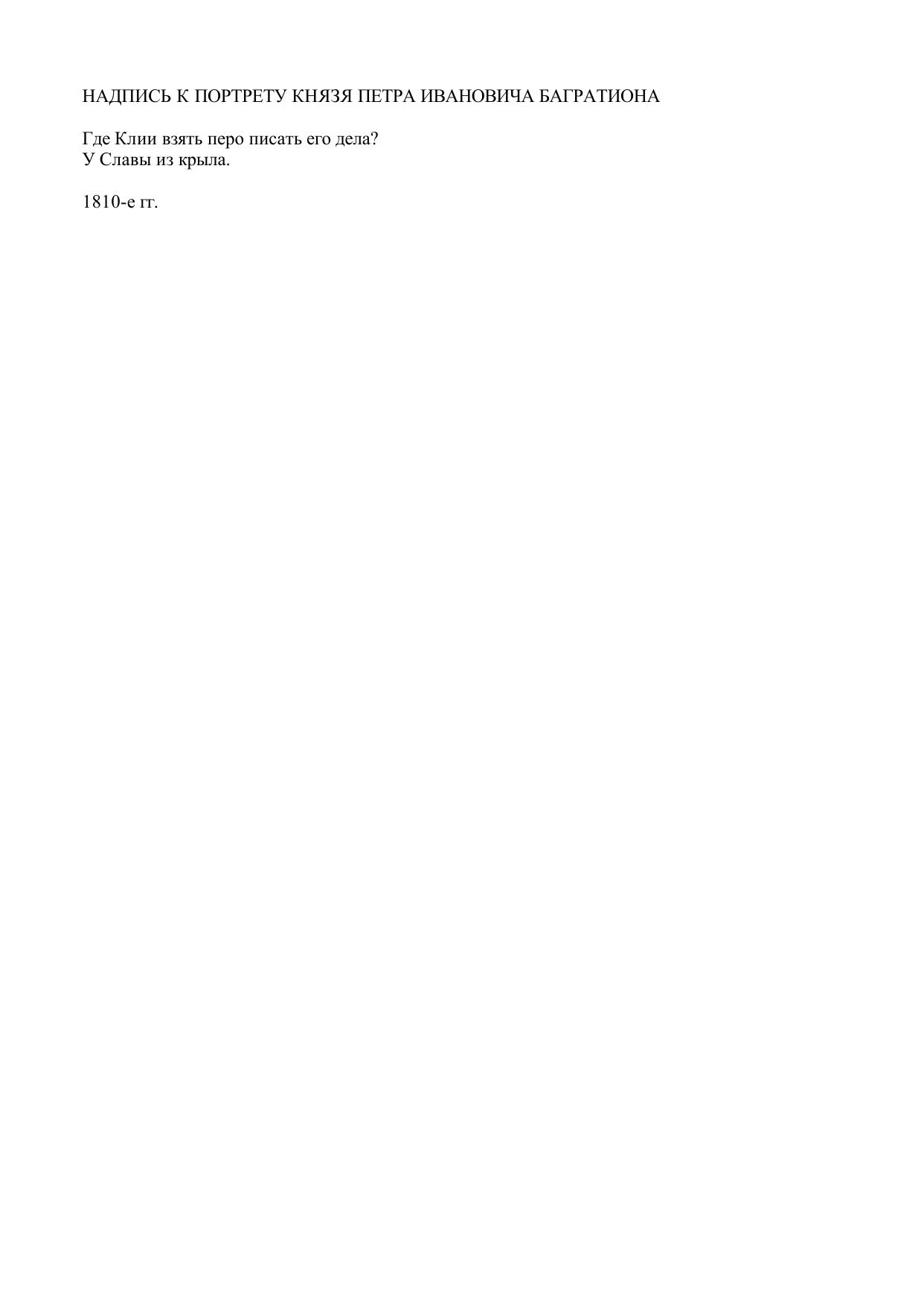 Надпись к портрету князя Петра Ивановича Багратиона