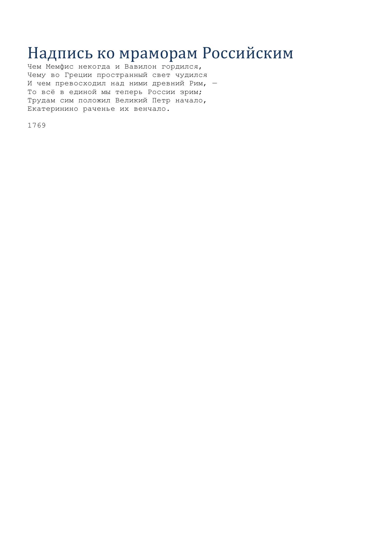 Надпись ко мраморам Российским