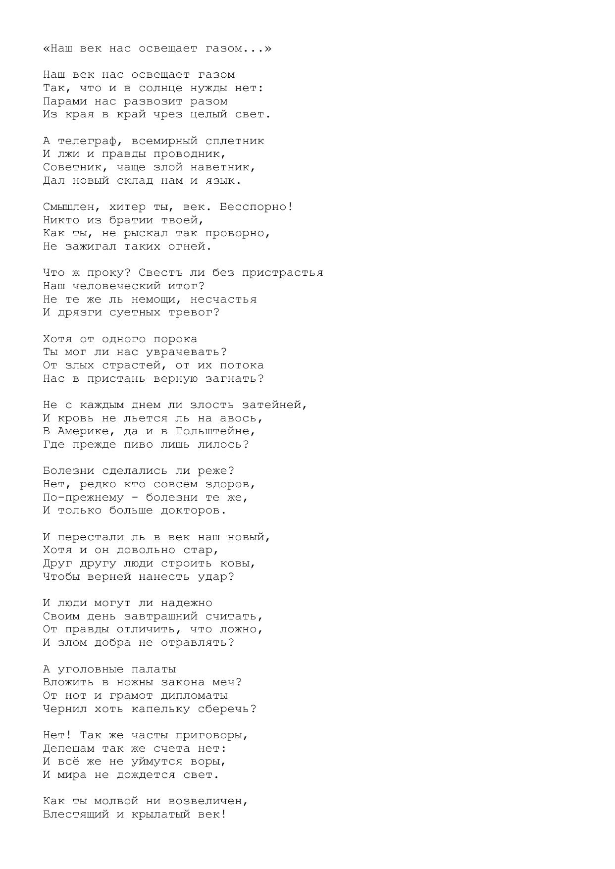 Наш век нас освещает газом...