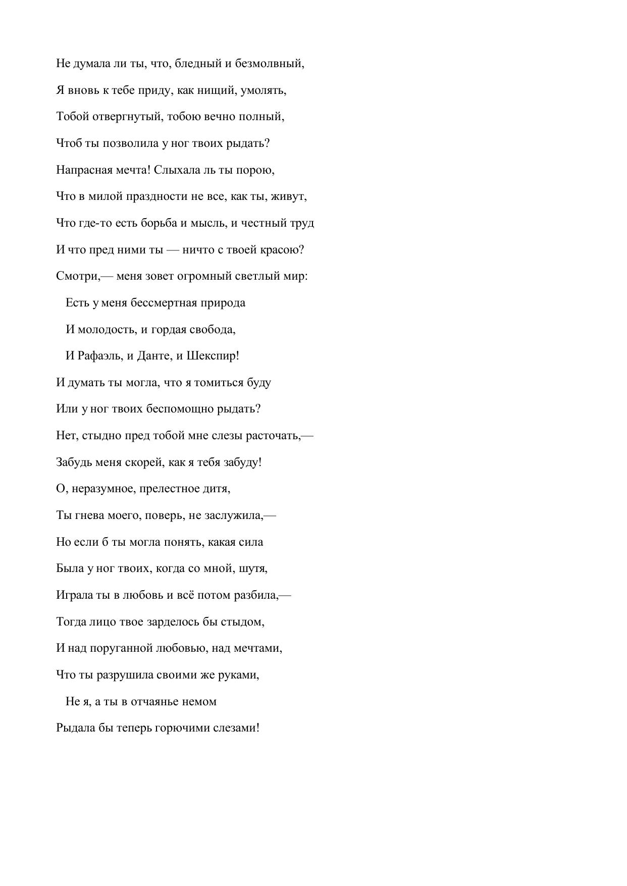 Не думала ли ты, что, бледный и безмолвный...