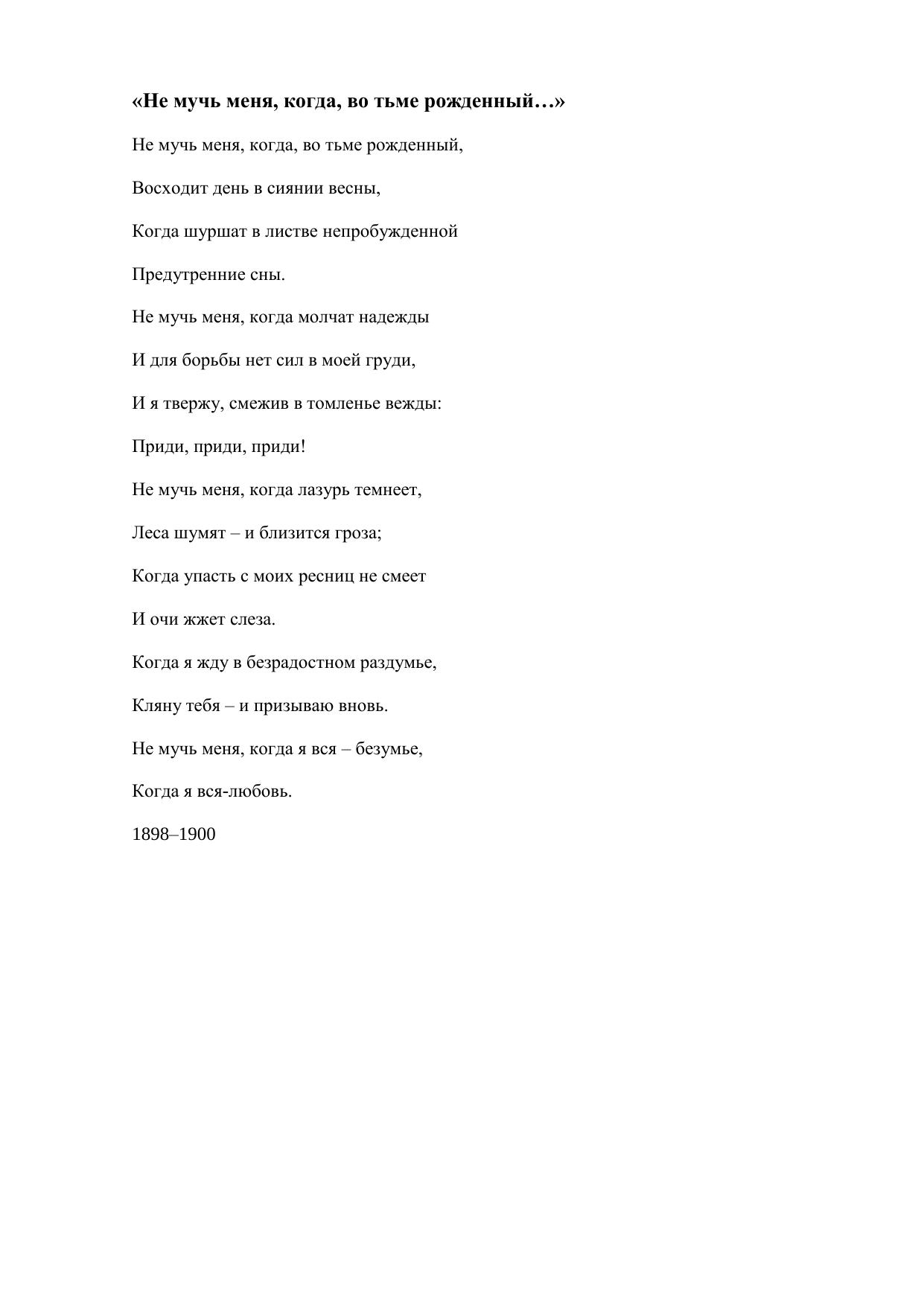 Не мучь меня, когда, во тьме рожденный…