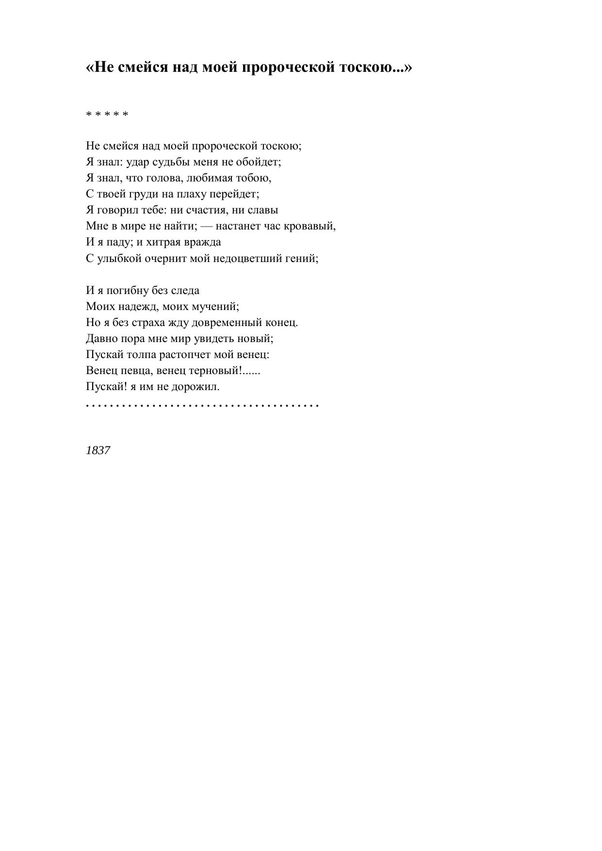 Не смейся над моей пророческой тоскою...