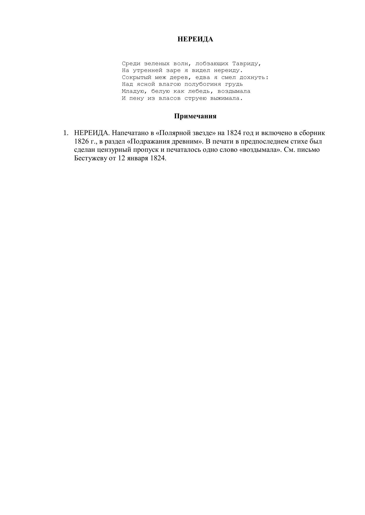 Нереида ("Среди зеленых волн, лобзающих Тавриду...")
