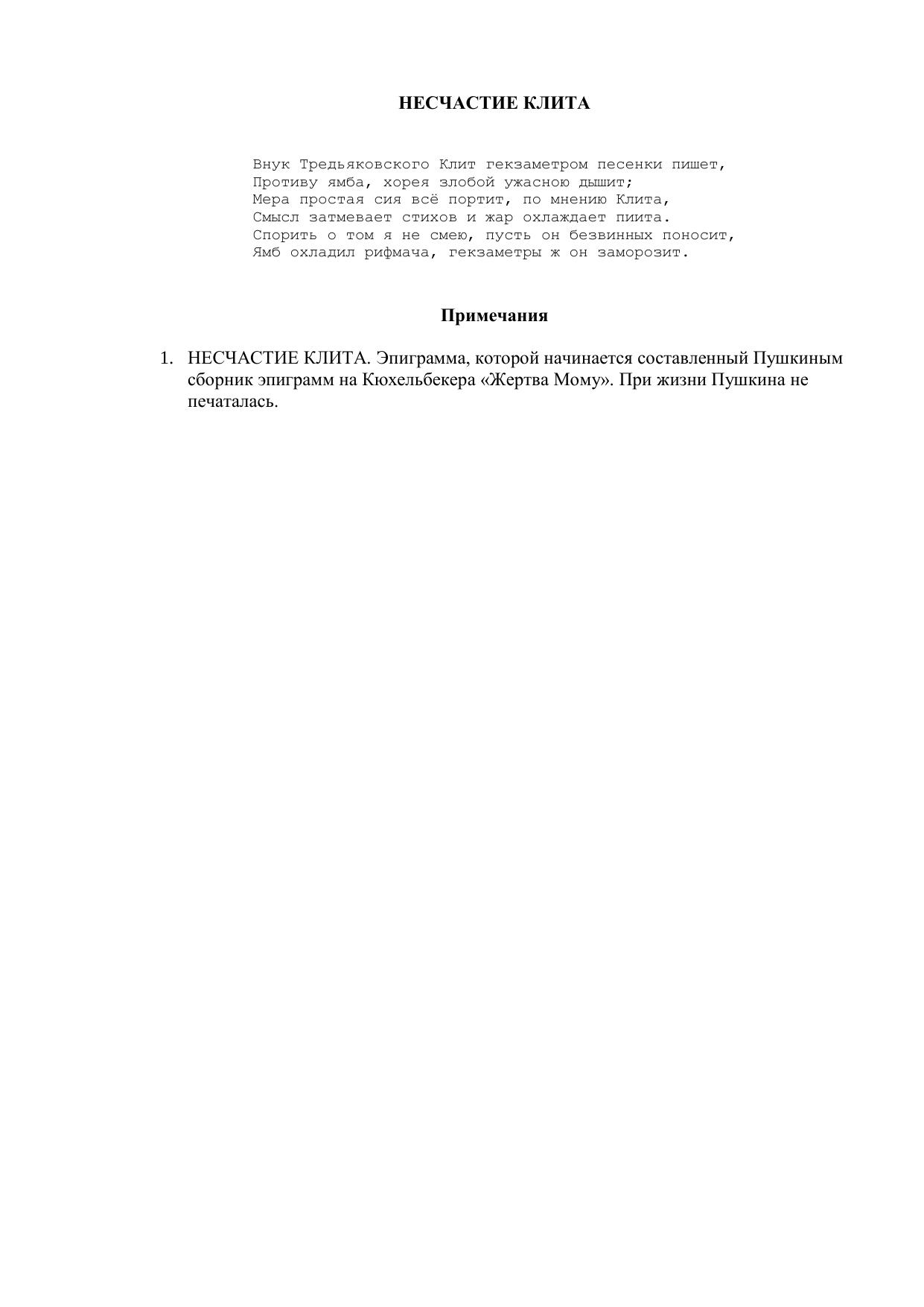 Несчастие Клита ("Внук Тредьяковского Клит гекзаметром песенки пишет...")