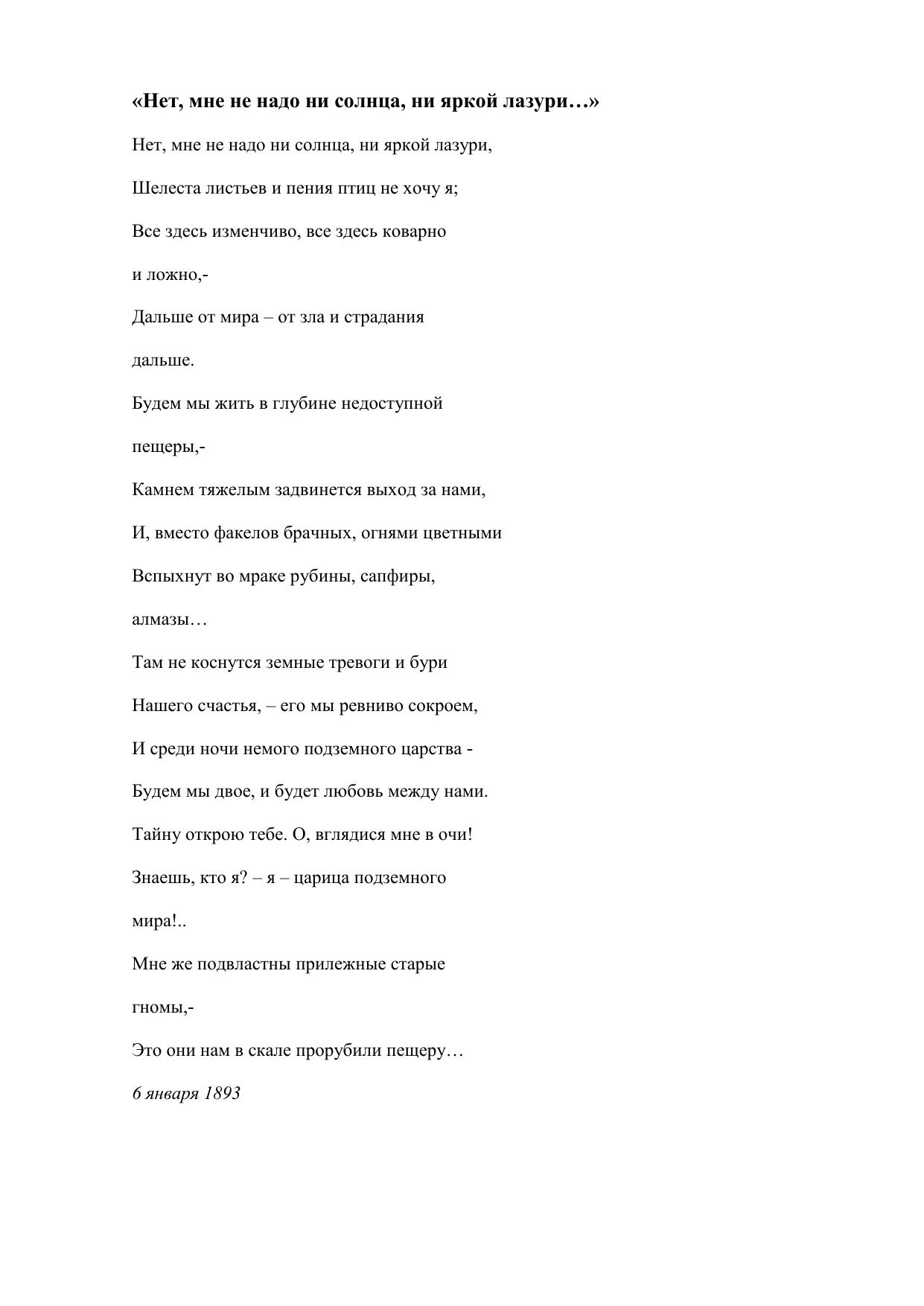 Нет, мне не надо ни солнца, ни яркой лазури…