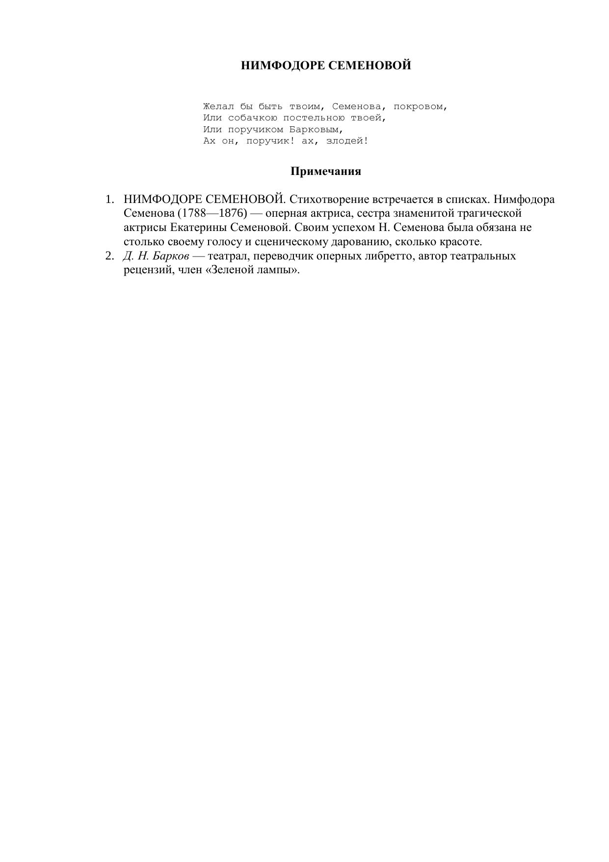 Нимфодоре Семеновой ("Желал бы быть твоим, Семенова, покровом...")