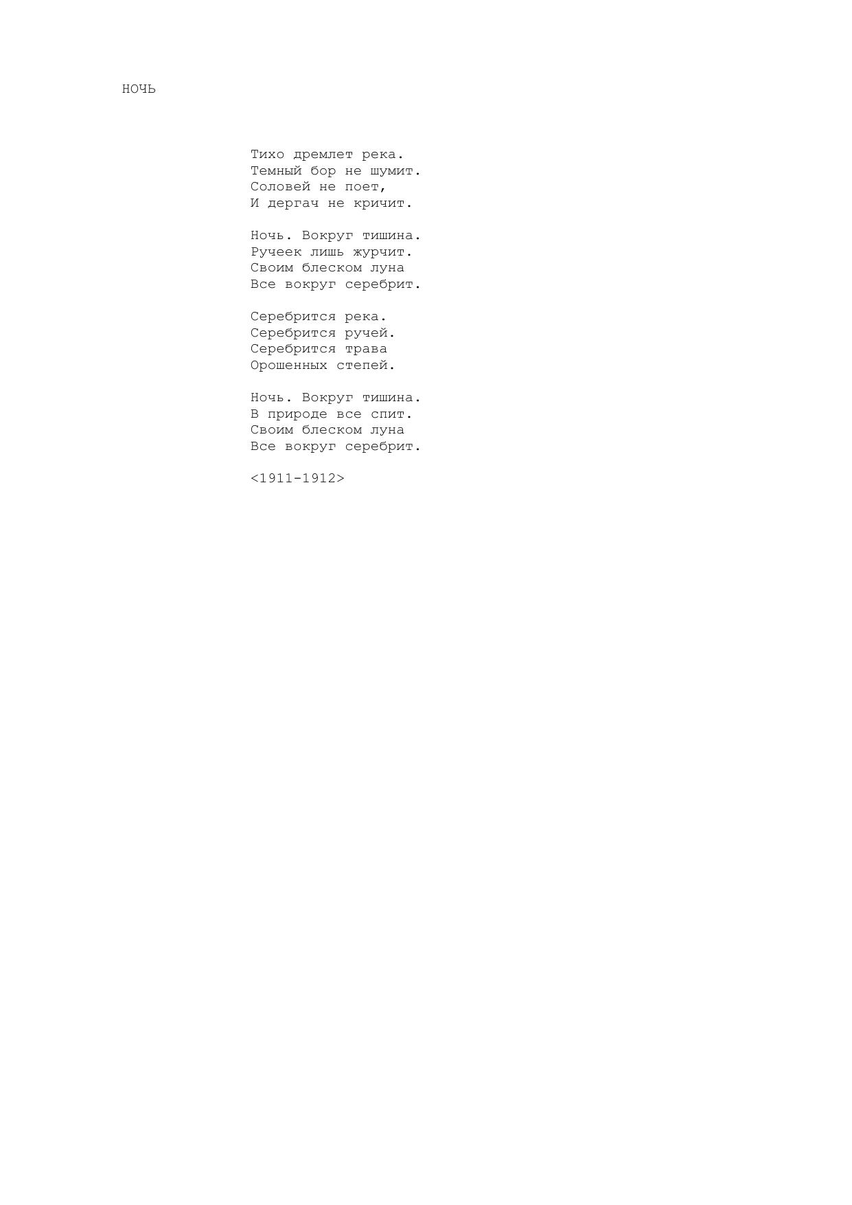 Ночь (Есенин С.А. Тихо дремлет река...Есенин С.А. )