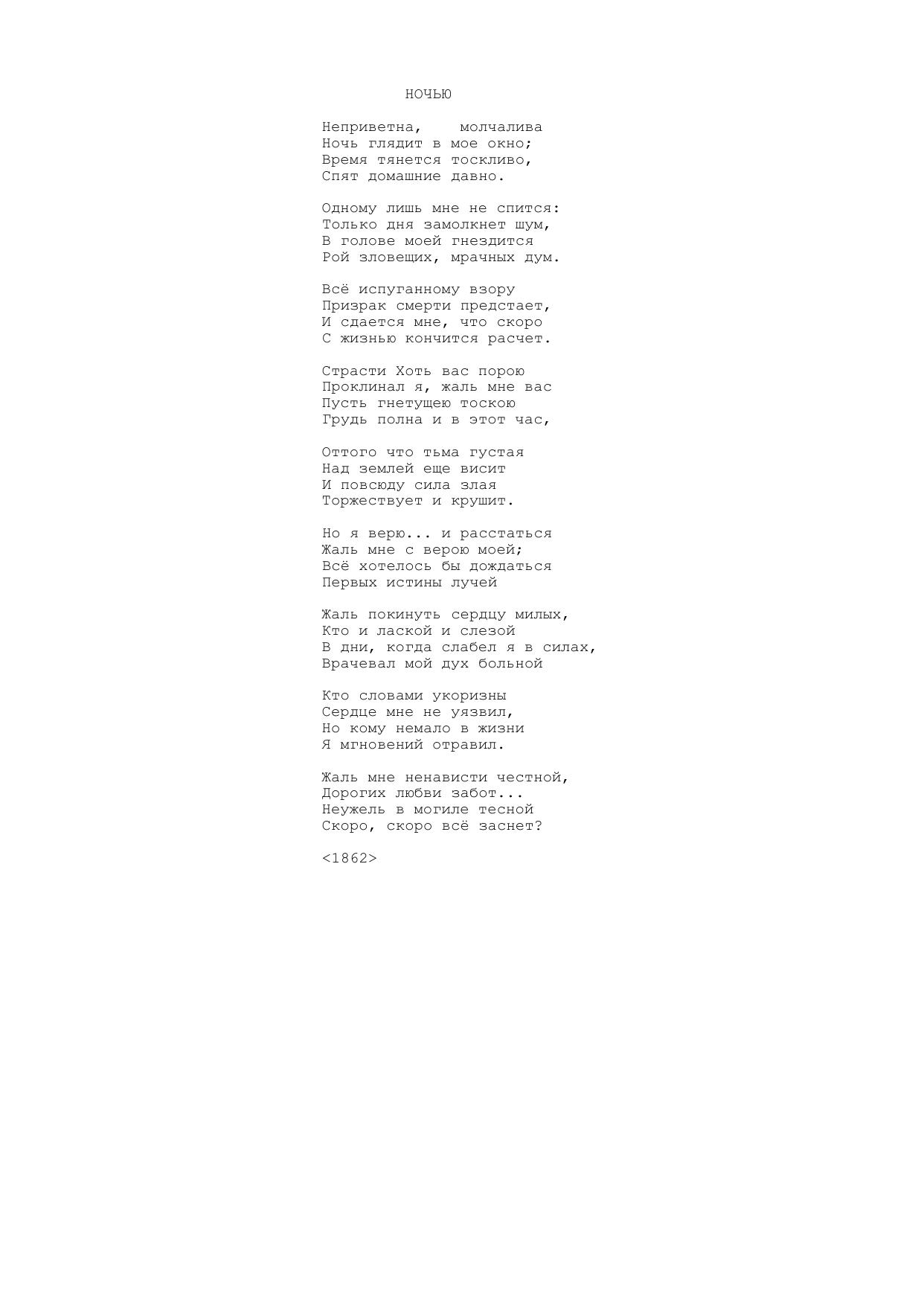Ночью (Неприветна, молчалива...)