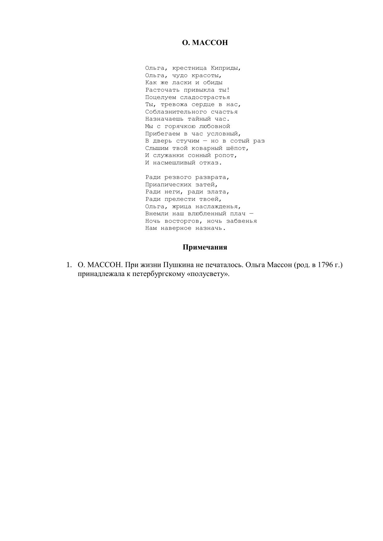 О. Массон ("Ольга, крестница Киприды...")