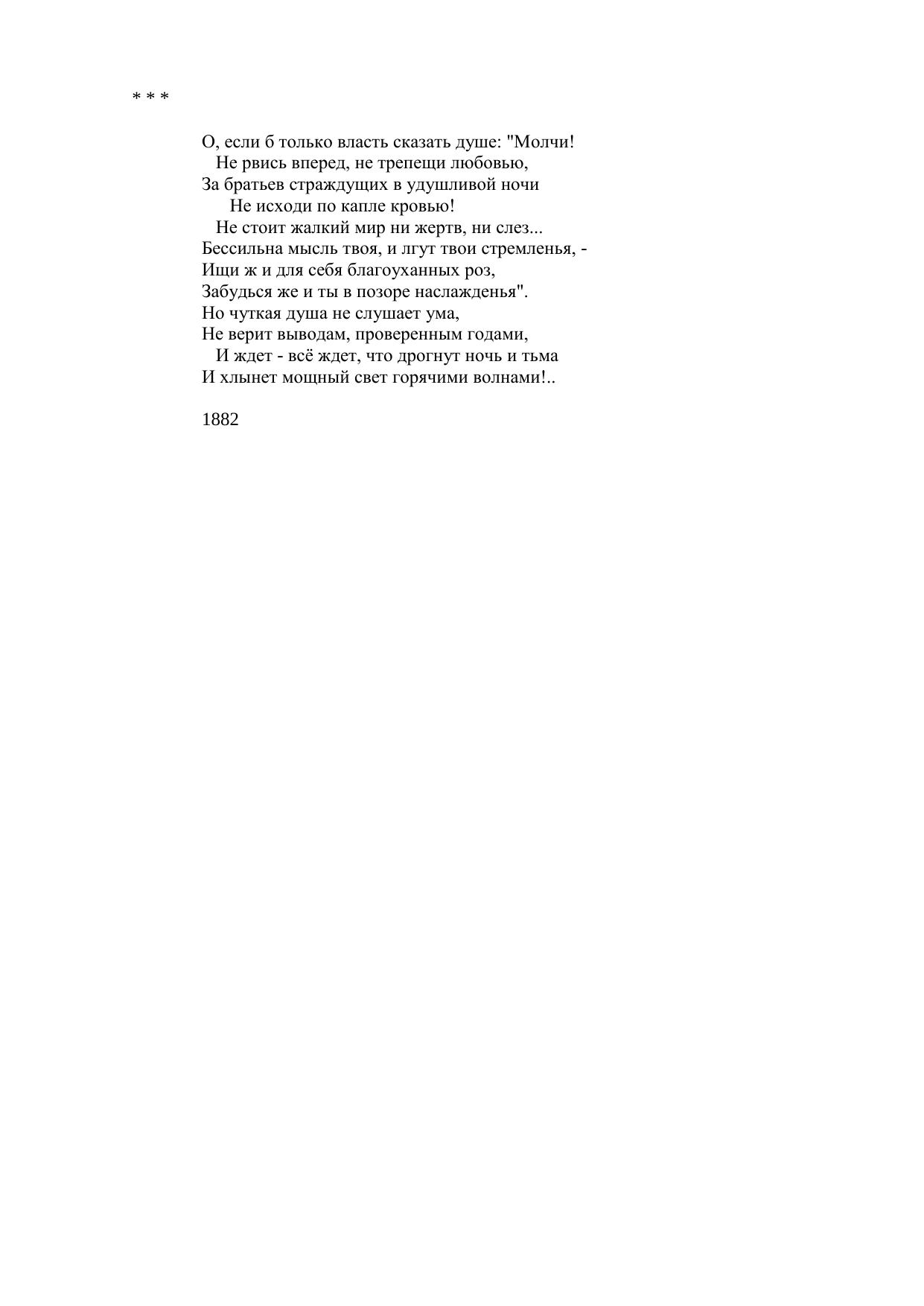 О, если б только власть сказать душе: Молчи!..